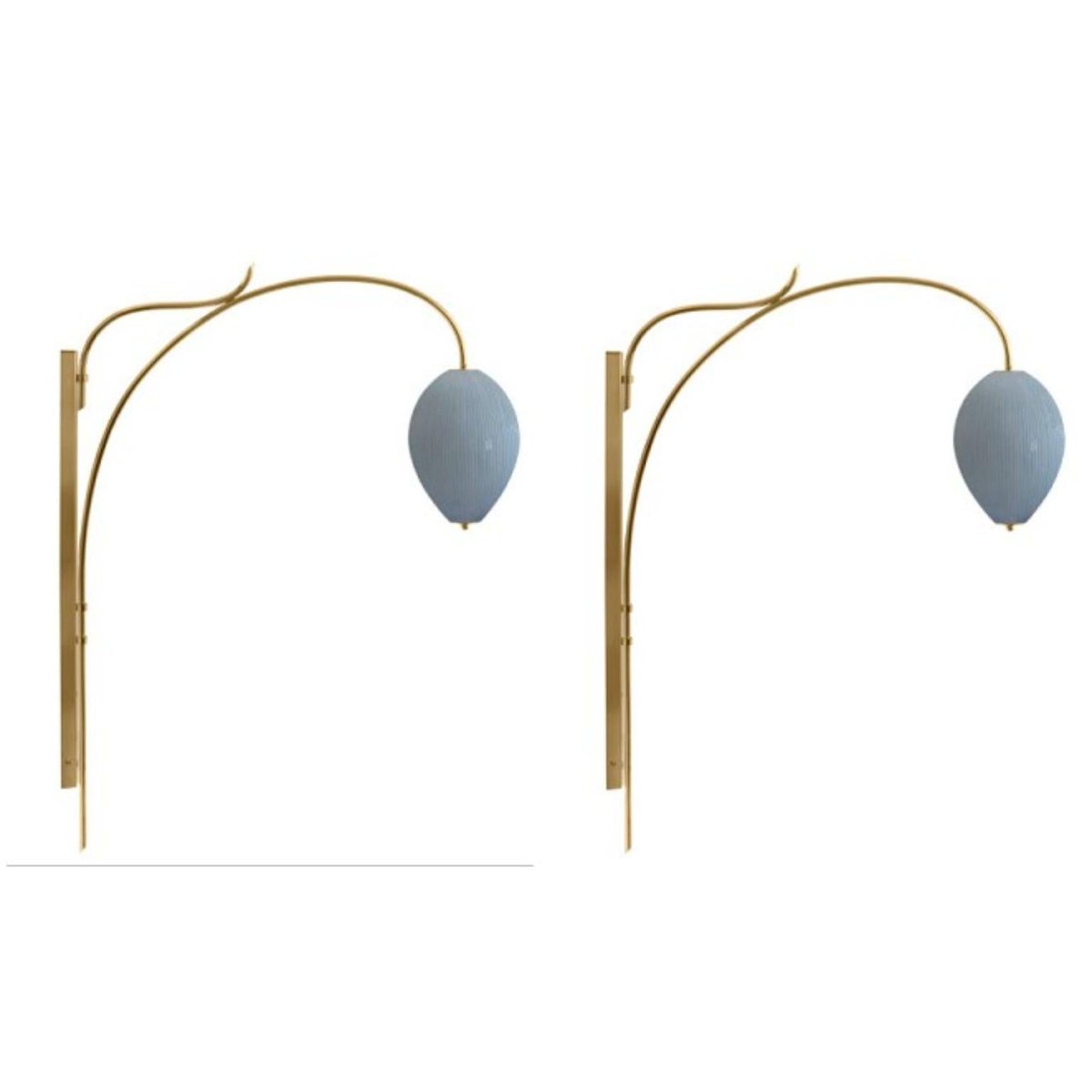 Wall lamp China 10 by Magic Circus Editions Dimensions: H 134 x W 25.2 x D 113.5 cm Materials: Brass, mouth blown glass sculpted with a diamond saw Colour: opal grey Available finishes: Brass, nickel Available colours: enamel soft white, soft rose, jade green, mustard yellow, rich grey, opal grey All our lamps can be wired according to each country. If sold to the USA it will be wired for the USA for instance. Rethinking, reimagining, redesigning familiar objects that we look at every day without ever really seeing them and using light to tell stories, this how Marie-Lise Féry sees her work. Offering a new take on our urban heritage, changing our perspective through her work on scale and usage. Since 2015, Magic Circus Éditions has been setting the world of lighting ablaze, creating airy, playful and magical designs that merge retro with sleek and contemporary. A free-spirited antiquarian, founder Marie-Lise Féry draws inspiration from the world of cabarets and the magic of the circus to give shape to imaginative, fun and playful collections. The air of magic she breathes into her work reveals a wealth of interpretations and widens possibilities for creative interiors. The combination of traditional know-how — outstanding craftsmanship — and her imaginative take on historical, everyday objects lends an unexpected and charming quality to her creations. Féry’s lights are designed just like magic lanterns — precursor to modern-day cinema —, inspiring wonder through oversized, seemingly weightless compositions and understated references. Each collection has its own inspiration: the first models of street lighting for Collection 01; the happy memories of funfairs, sweets and balloons for her latest collection Balloon; the Far East for Collection 02; and the colourful, carefree spirit of the 1970s for Pop-Up, released in 2019. Magic Circus Éditions draws on airy designs, dream-like inspirations, colours and fun to create a sense of enchantment. Magic Circus Éditions founder Marie-Lise Féry was born in Paris. After studyingart business, she moved to New York to start her career. Fascinated by the city’s architecture, she found an endless source of inspiration in the Big Apple’s monumental decors. Returning to France to settle down in Lyon, she opened an antiques gallery named Un Château en Espagne, and started telling her own stories through objects she gleaned on markets all around the country. A way for her to perpetuate her mother’s motto: “Objects with a soul will always belong”.
