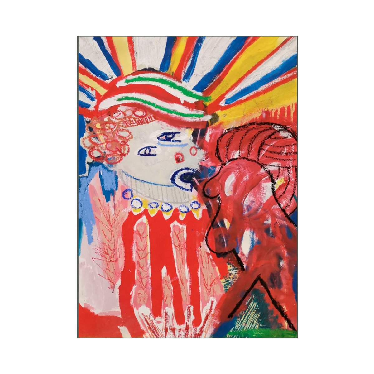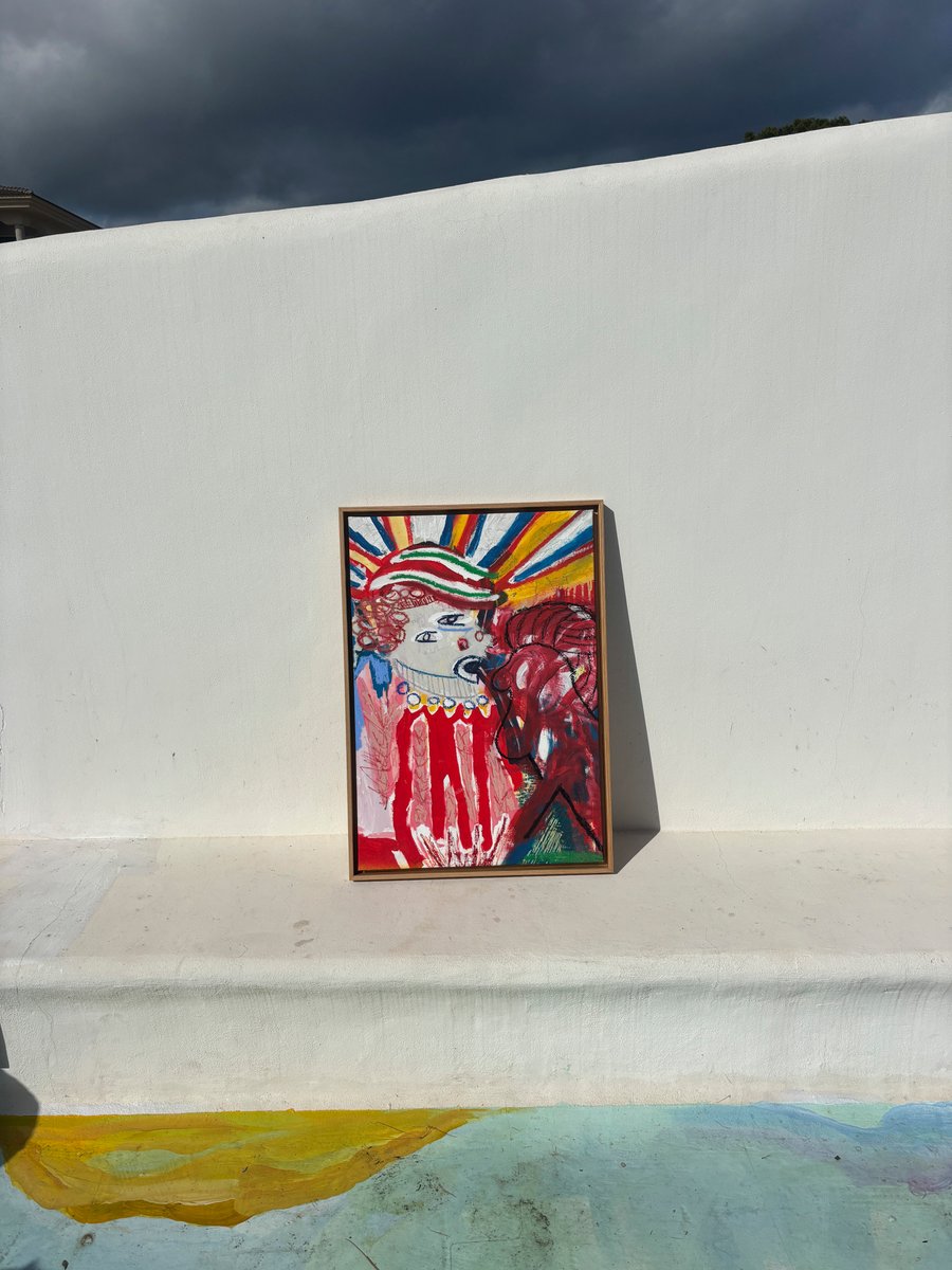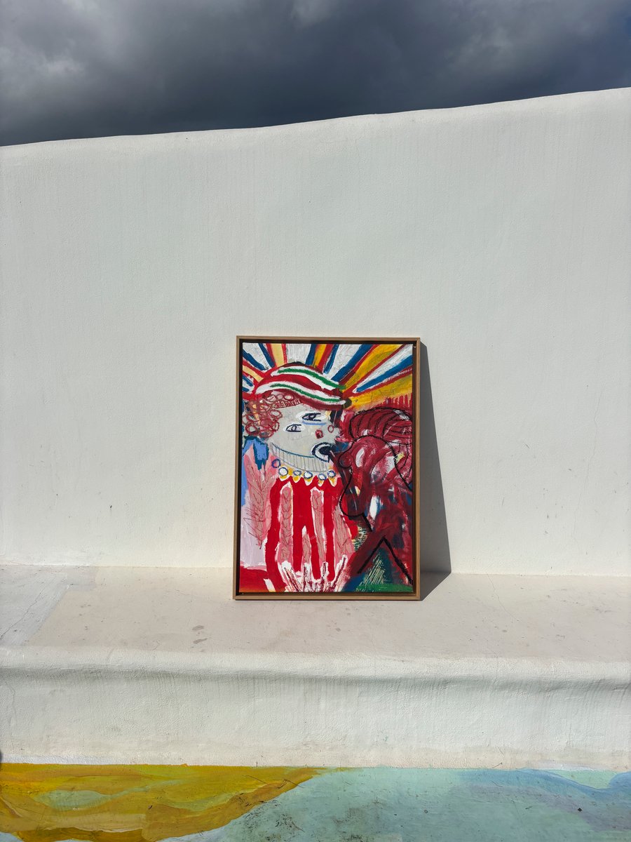 The king has no name, a sun that illuminates him and highlights him from the rest. It is the representation of abundance, brightness and light. On the left, another character can be seen, without eyes, mouth or nose, which reflects universal humanity and how we all have "something" in which we believe or listen. Sunshine was painted by Montevideo-based artist Alfonso Reyes.