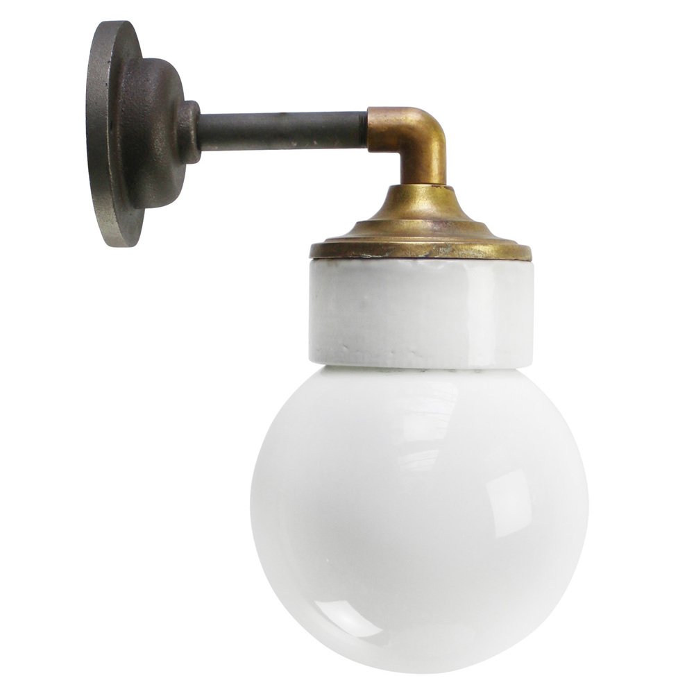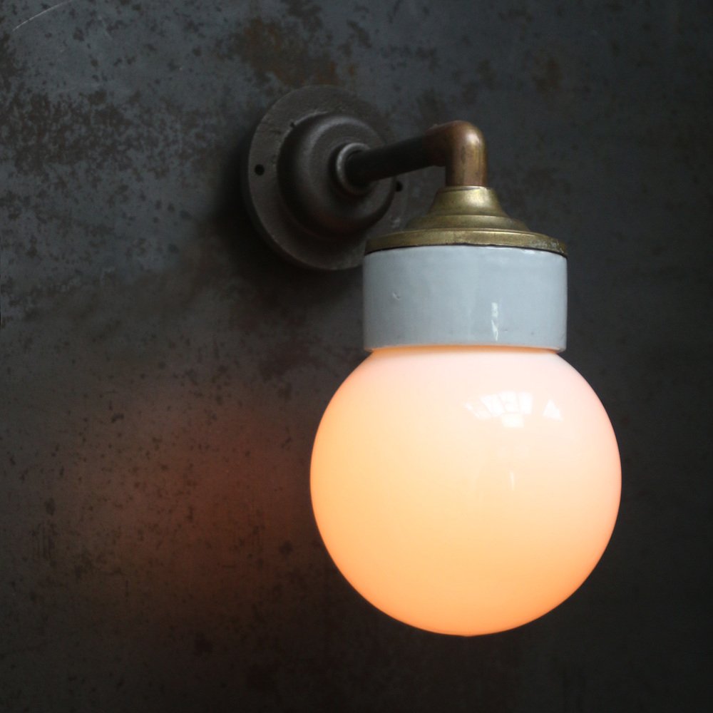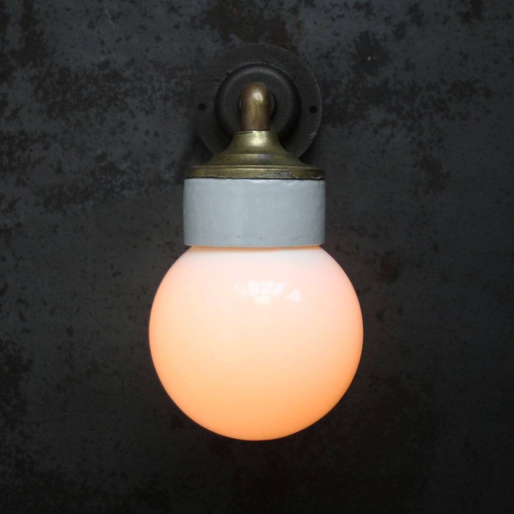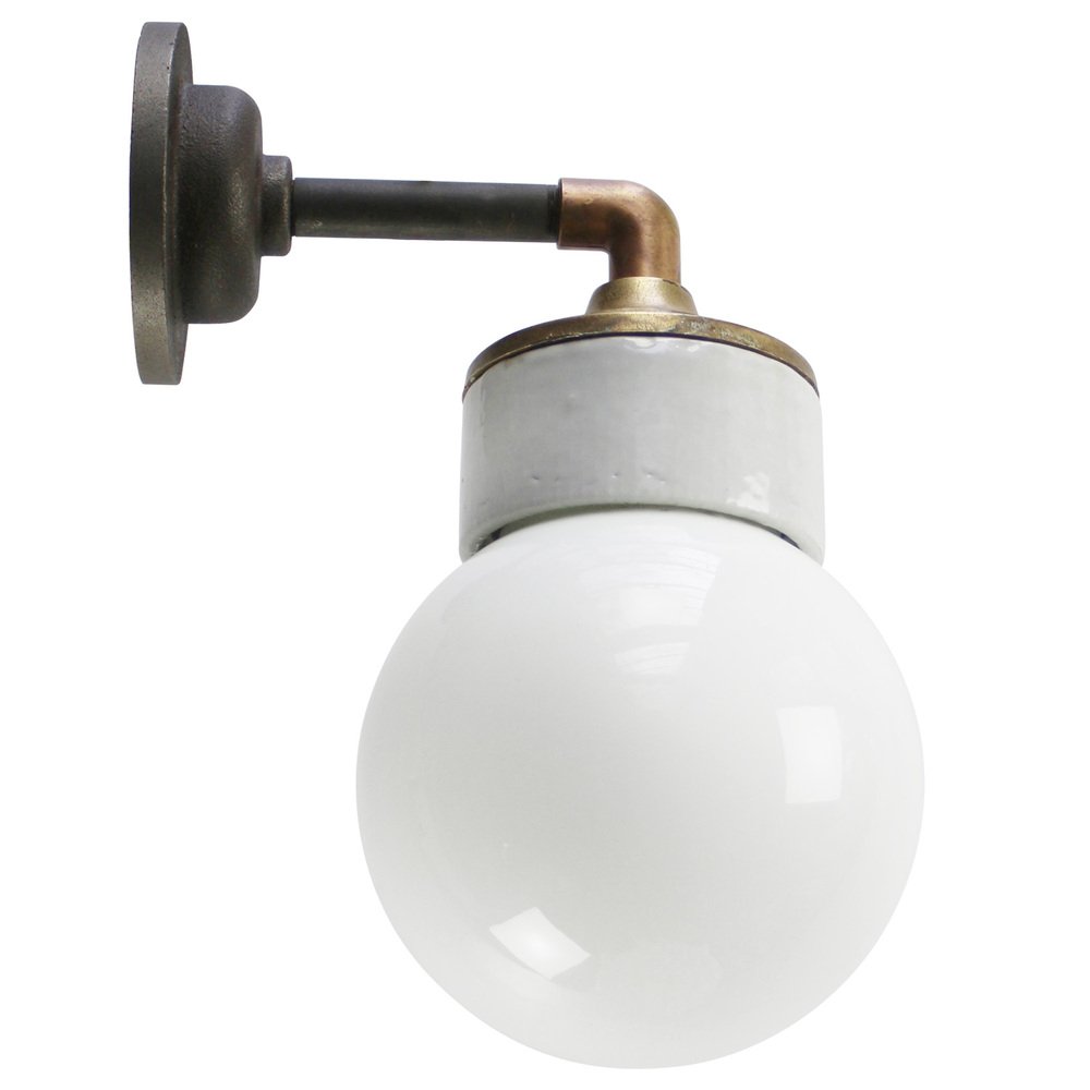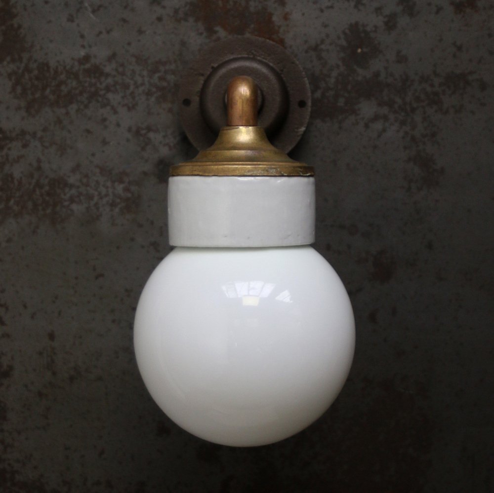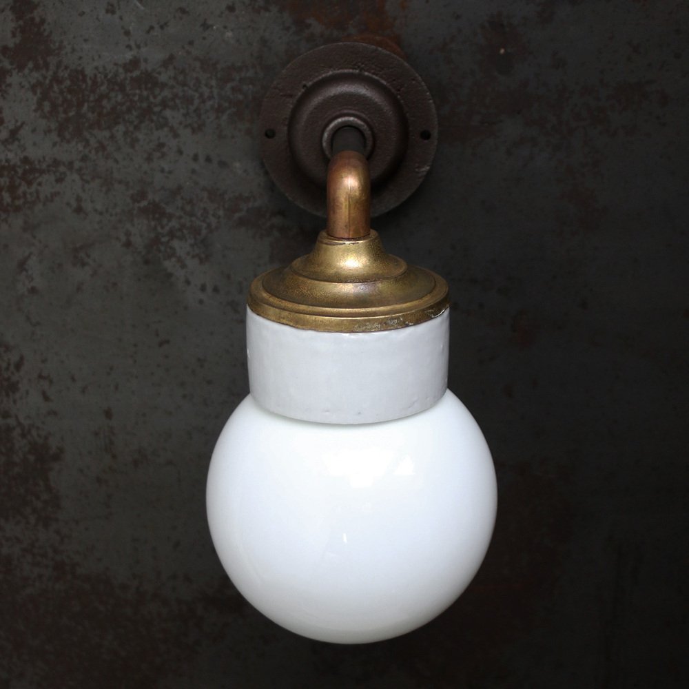 Applique Vintage Industrielle en Porcelaine Blanche et Verre Opalin