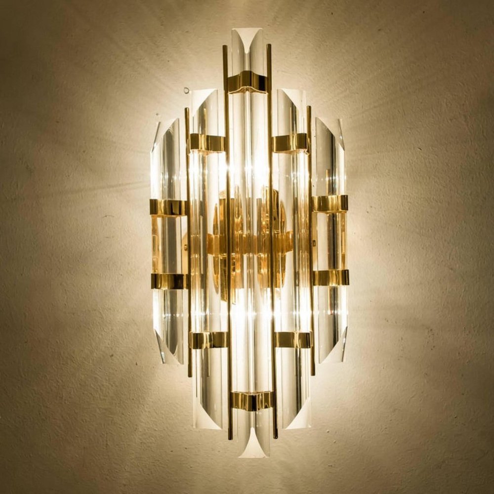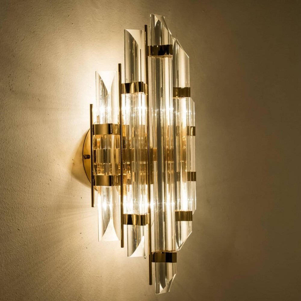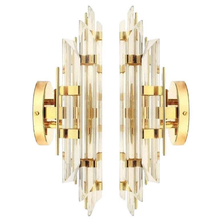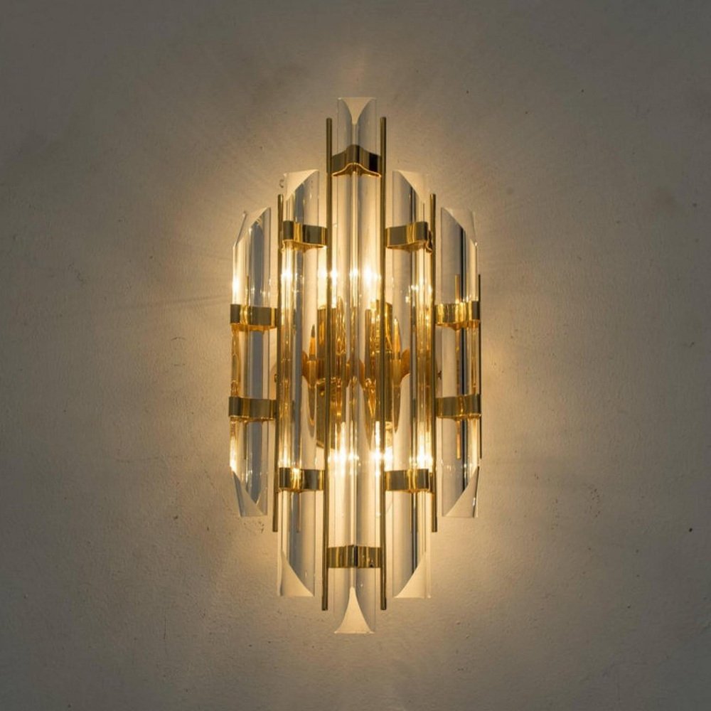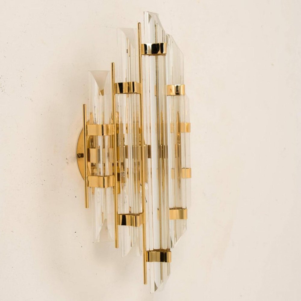 Appliques en Verre de Murano et Plaqué Or dans le style Venini, Italie, 1975, Set de 2