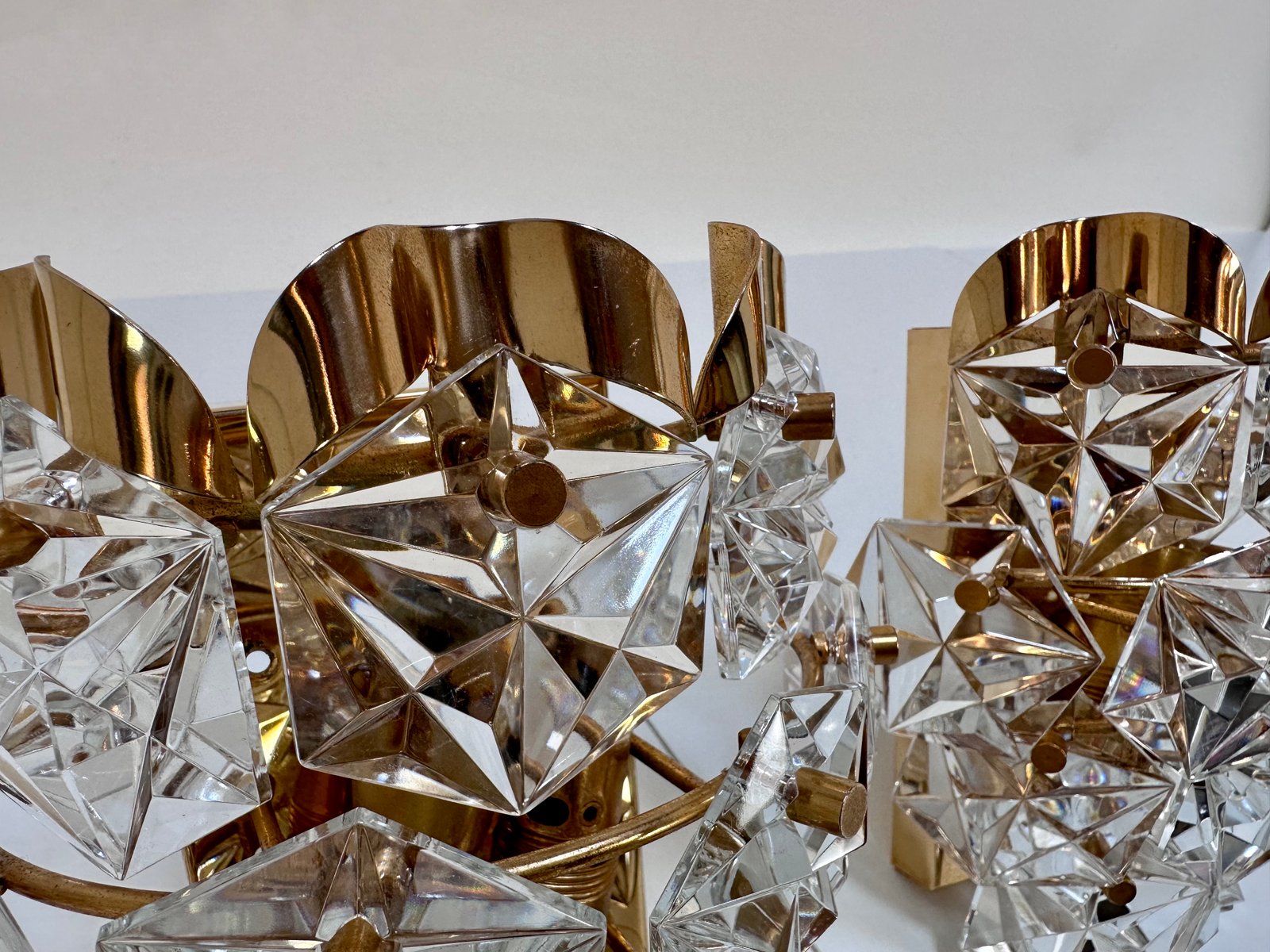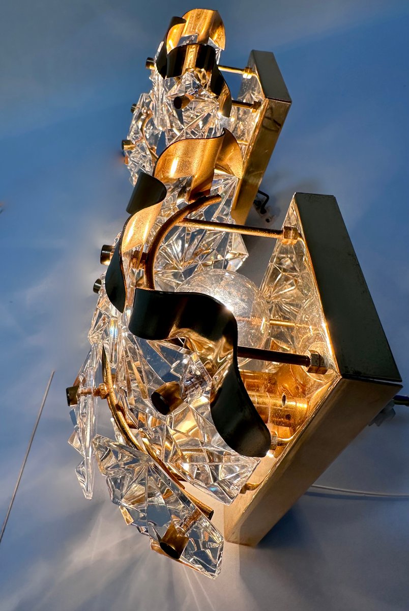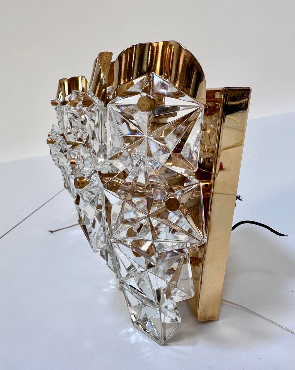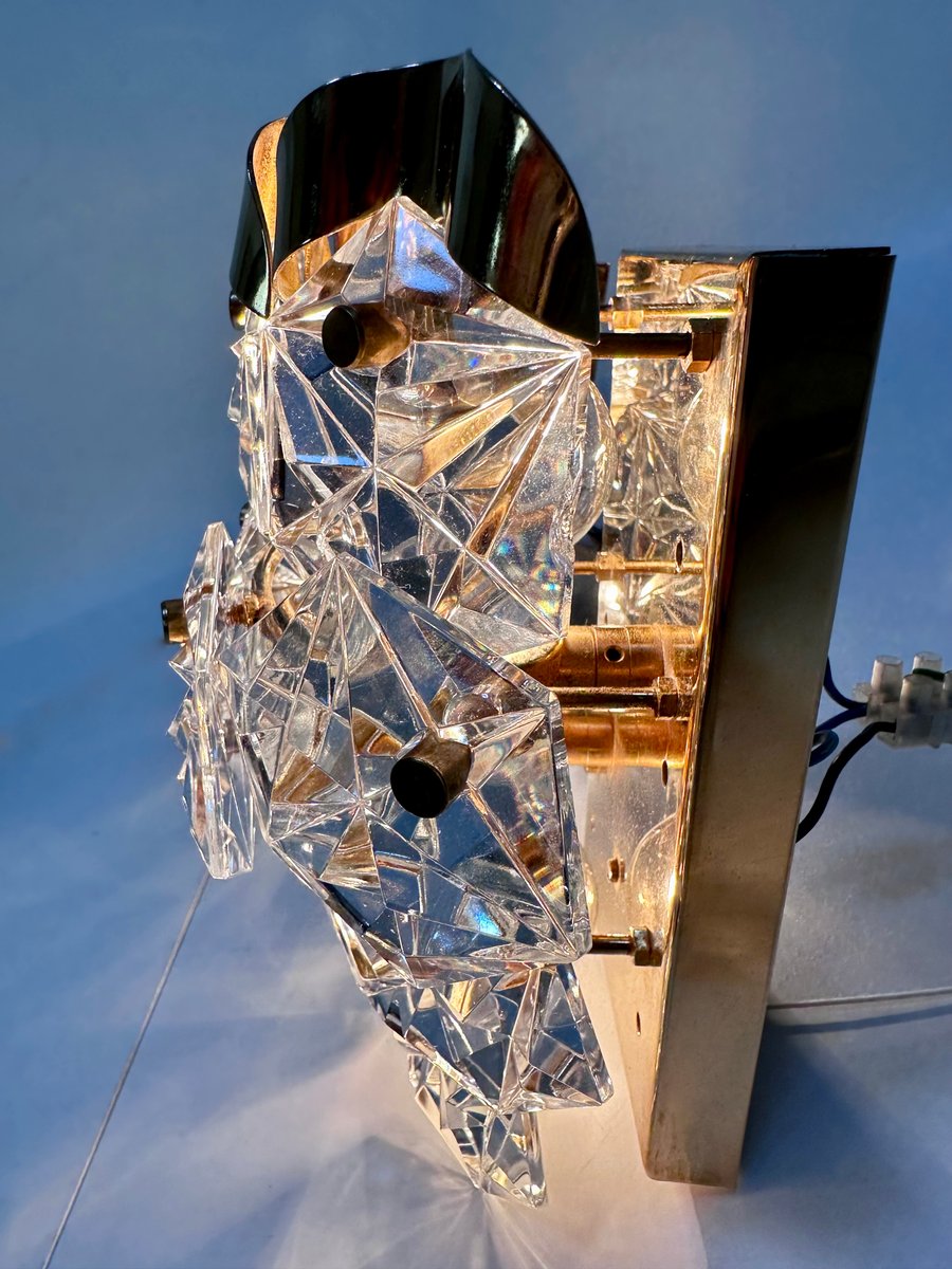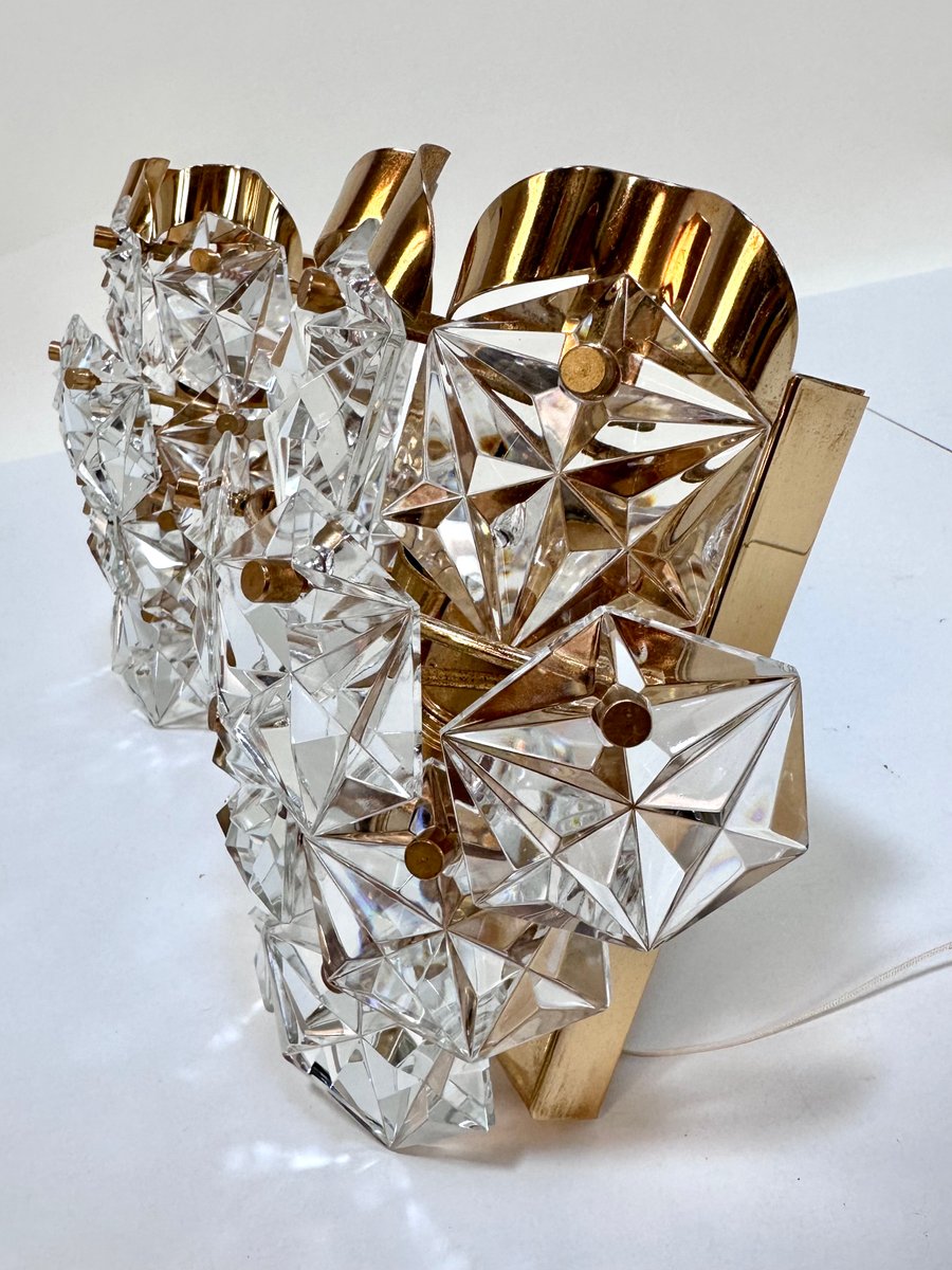 Appliques Murales en Verre de Cristal Taillé et Laiton de Kinkeldey, 1960s, Set de 2