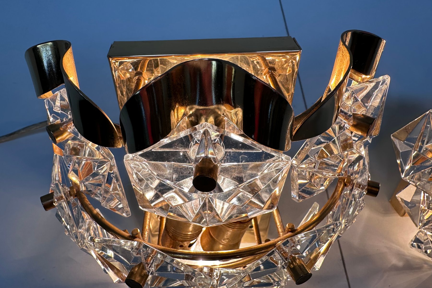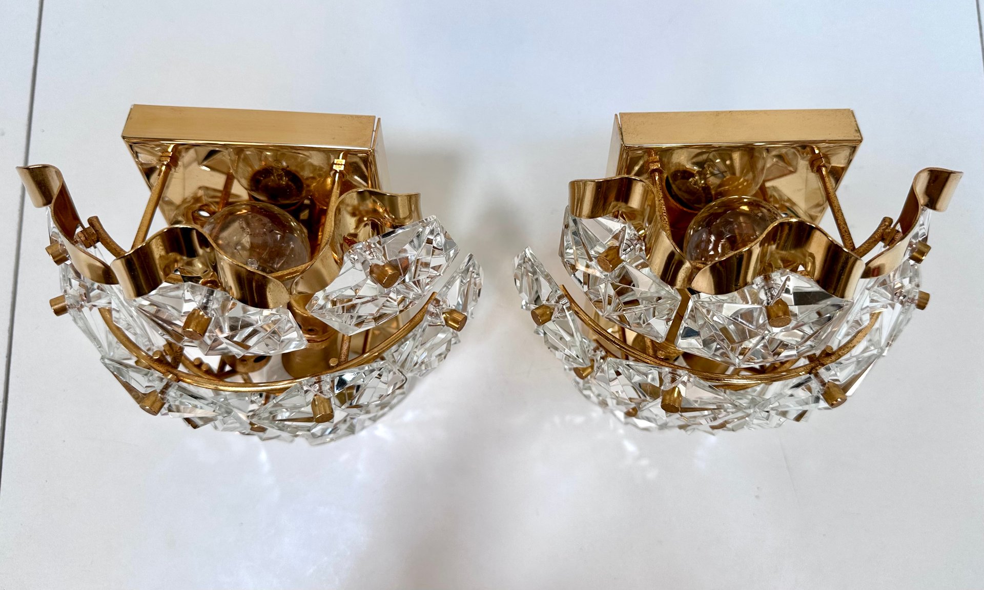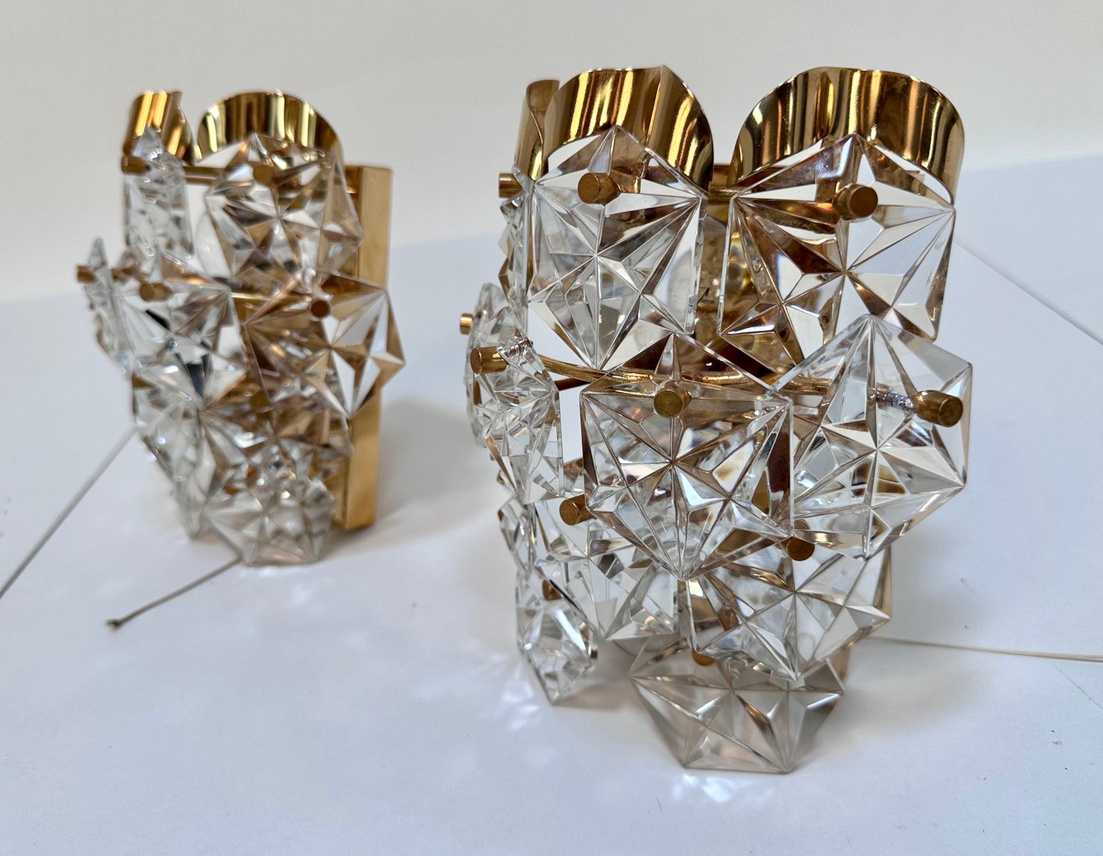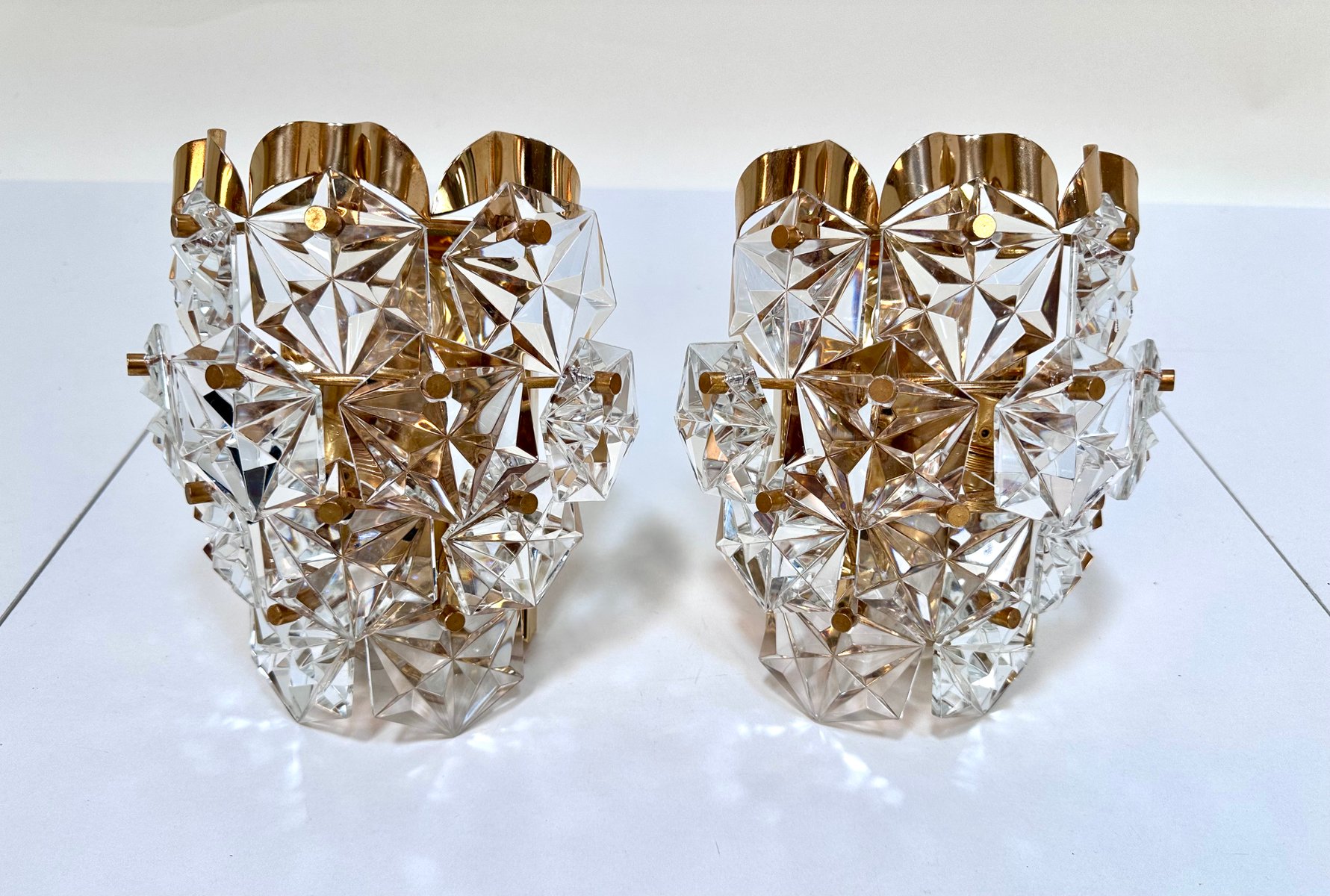 Appliques Murales en Verre de Cristal Taillé et Laiton de Kinkeldey, 1960s, Set de 2