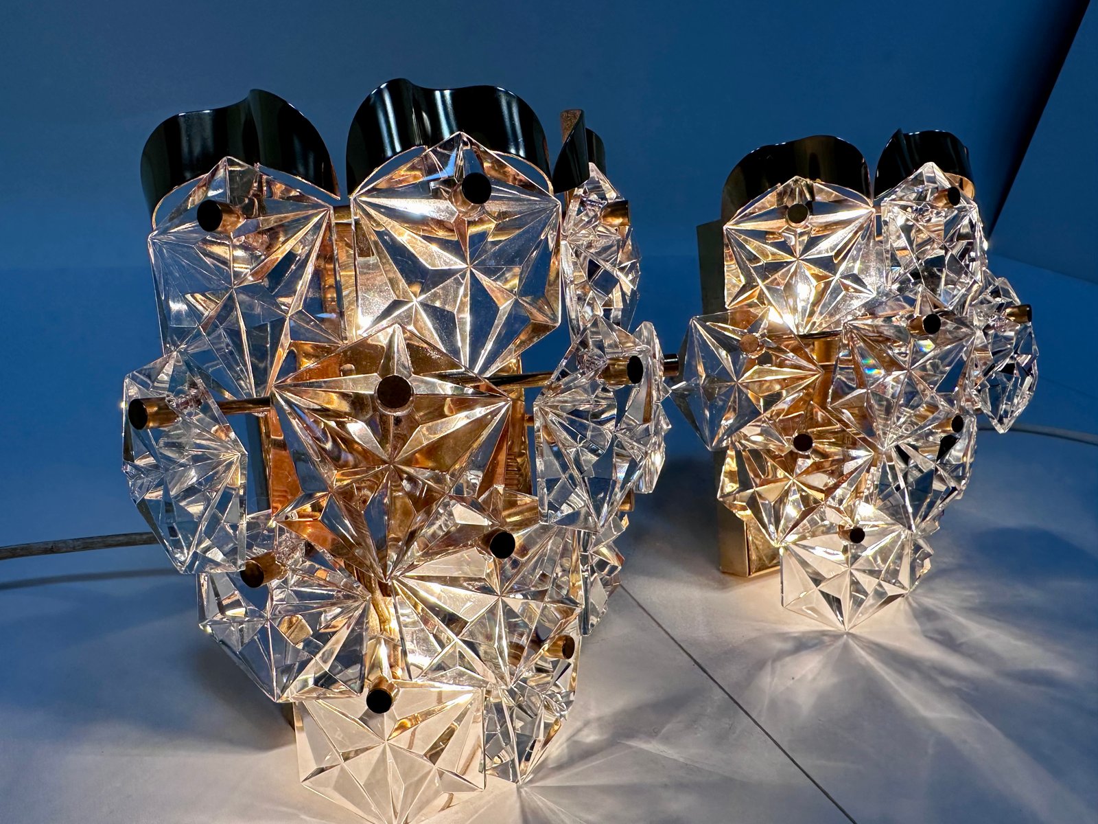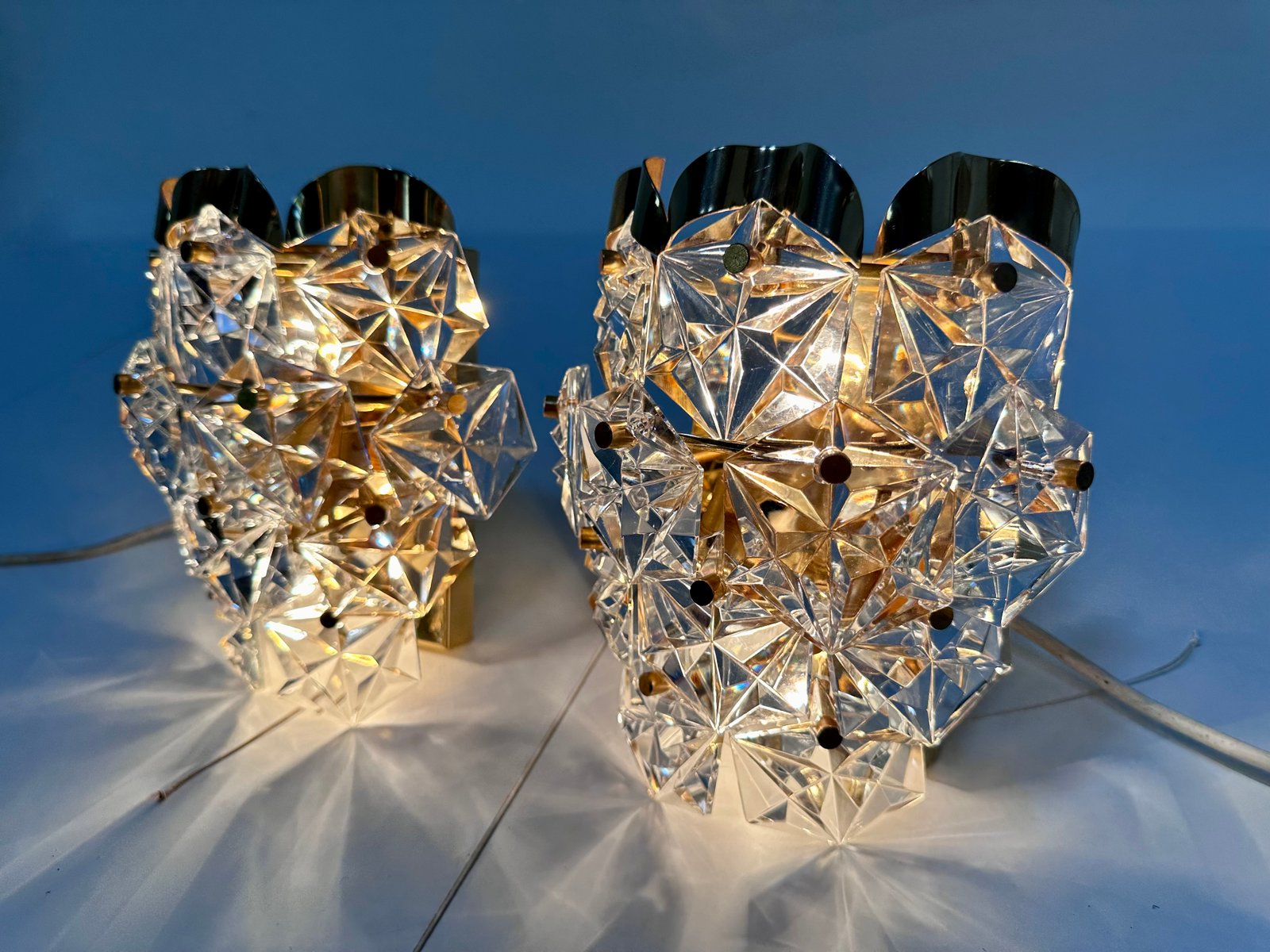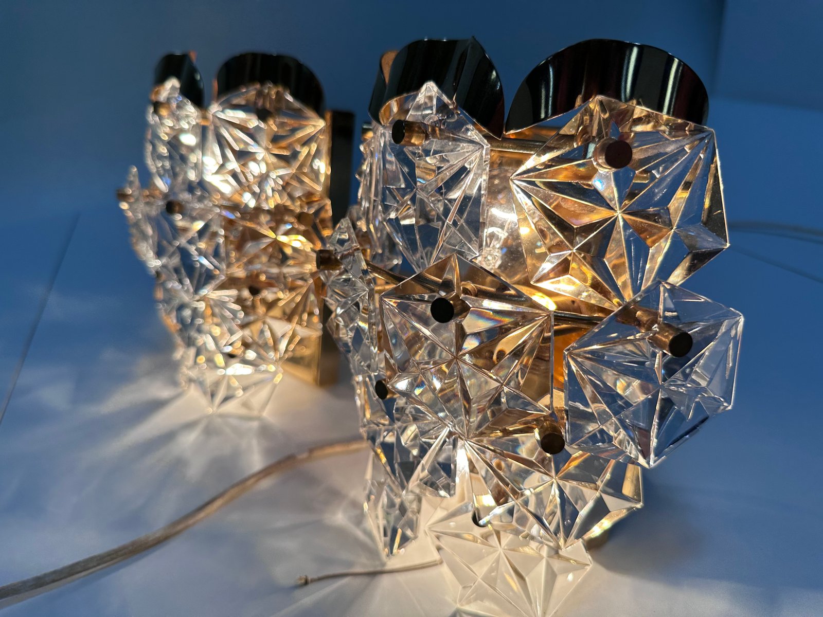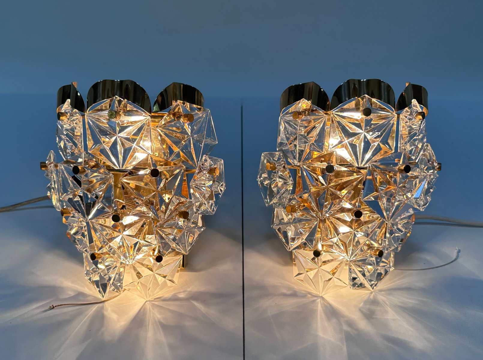 Appliques Murales en Verre de Cristal Taillé et Laiton de Kinkeldey, 1960s, Set de 2