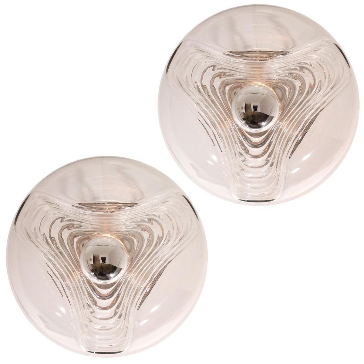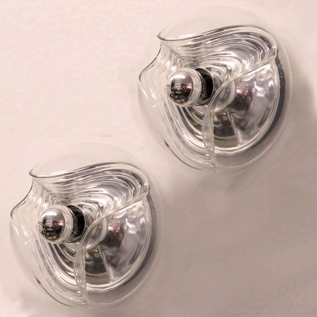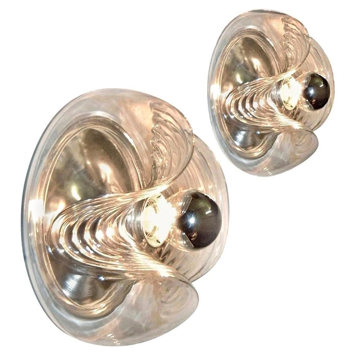 Appliques Murales en Verre Transparent par Peill Putzler pour Koch & Lowy, 1970, Set de 2