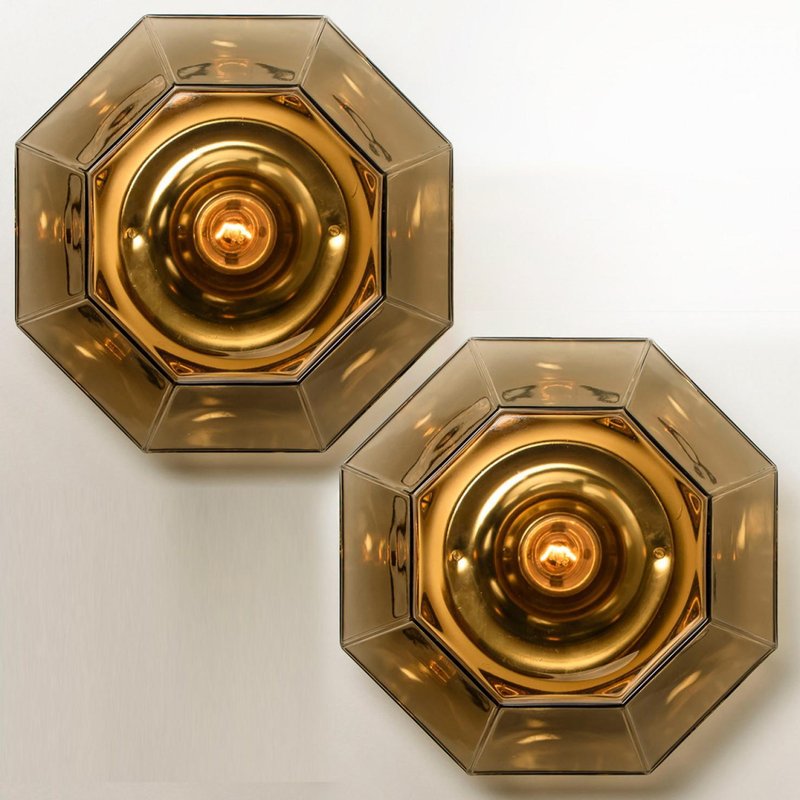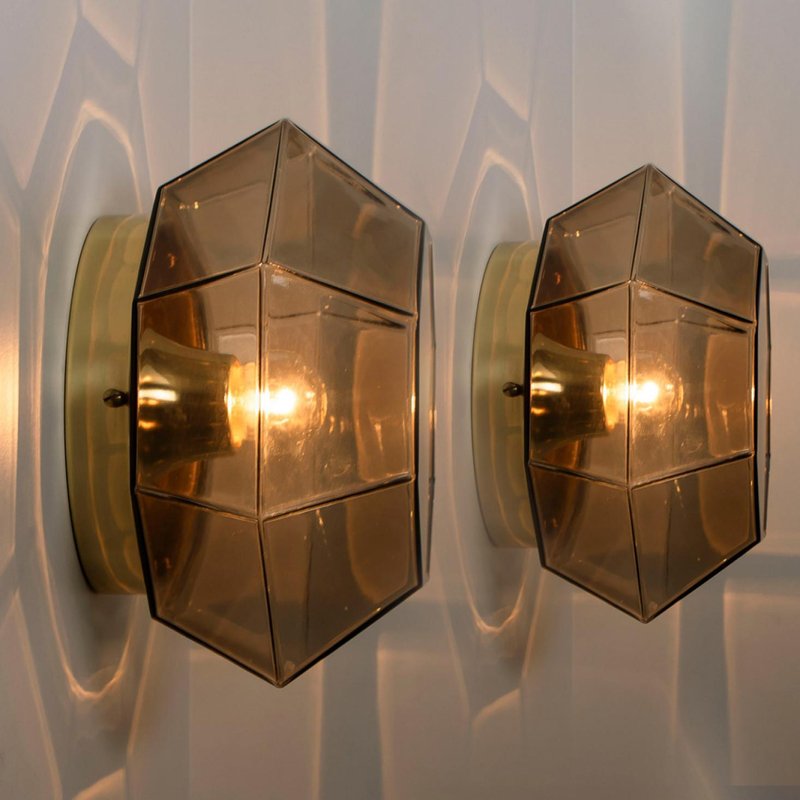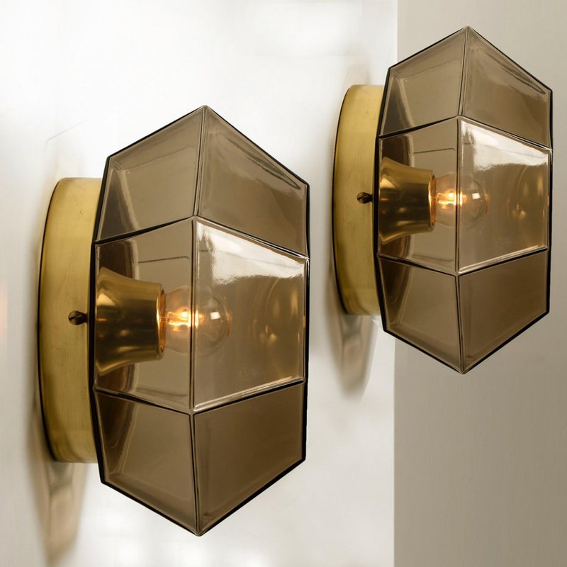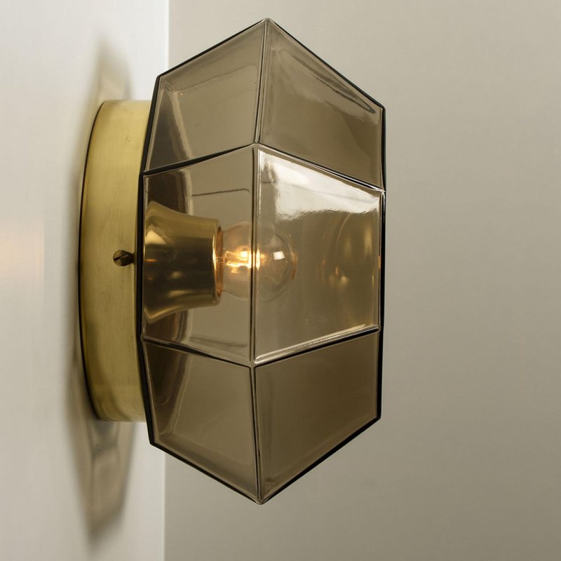 Appliques Murales Limburg en Verre Fumé et Laiton, 1970s