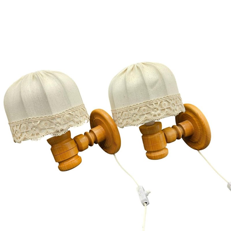 Appliques Murales Modernes en Pin avec Abat-Jour en Tissu, Suède, 1970s, Set de 2