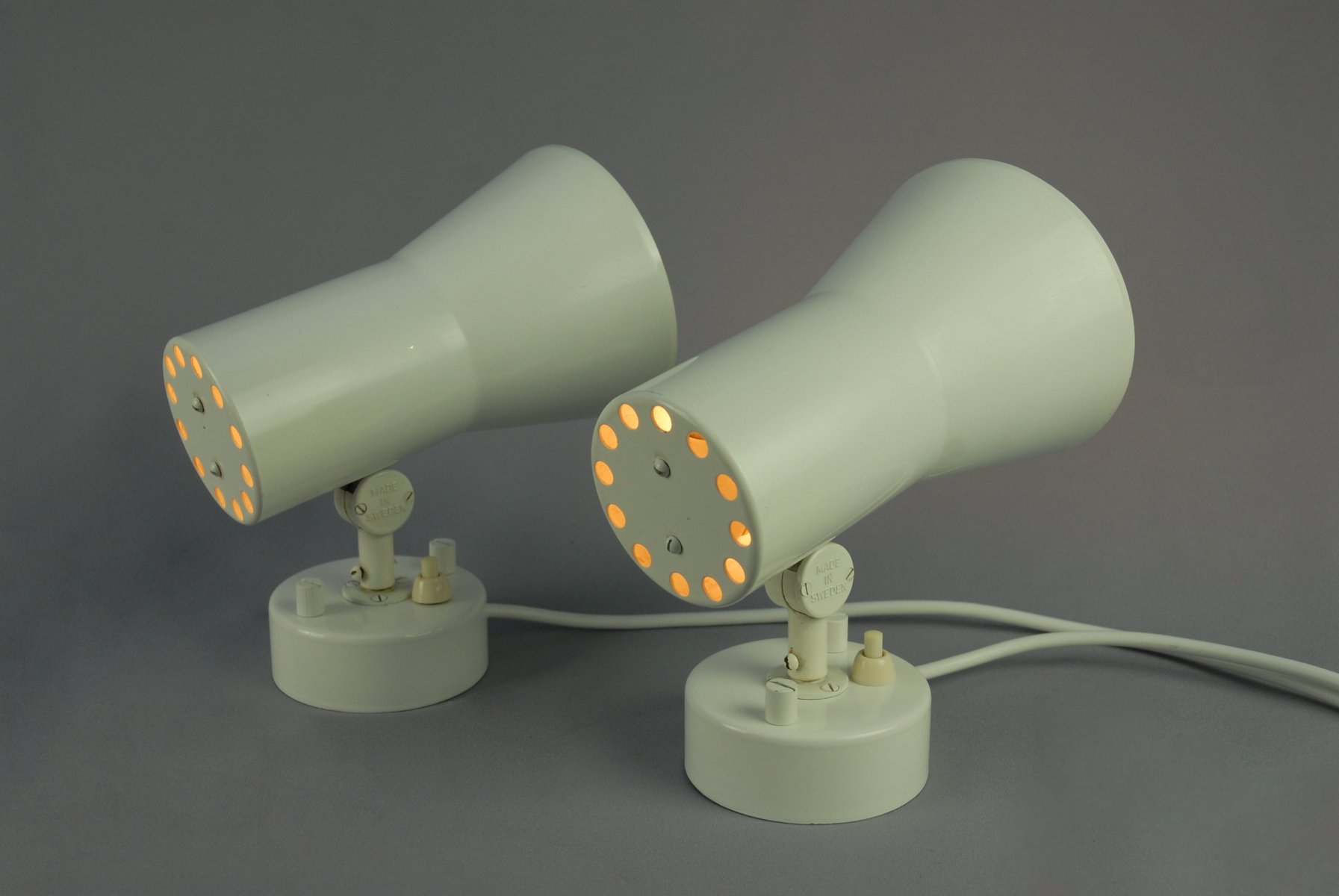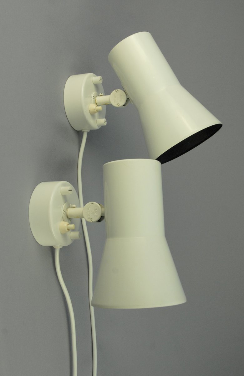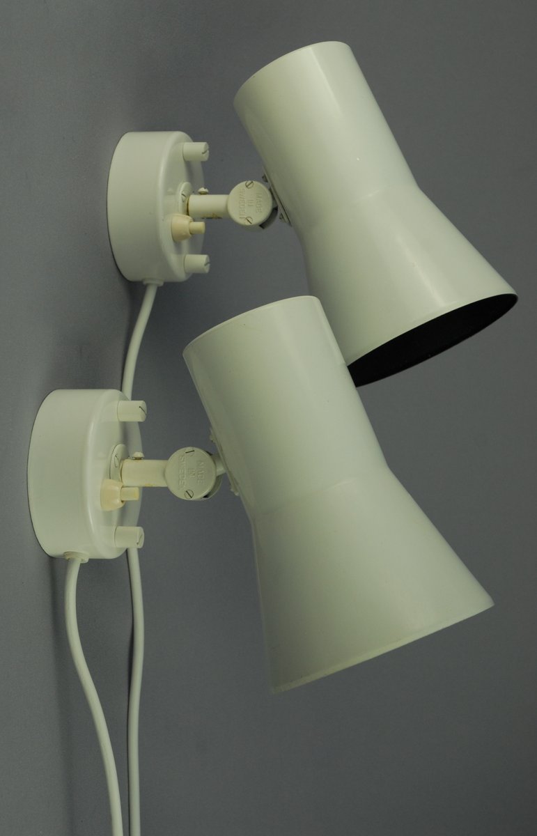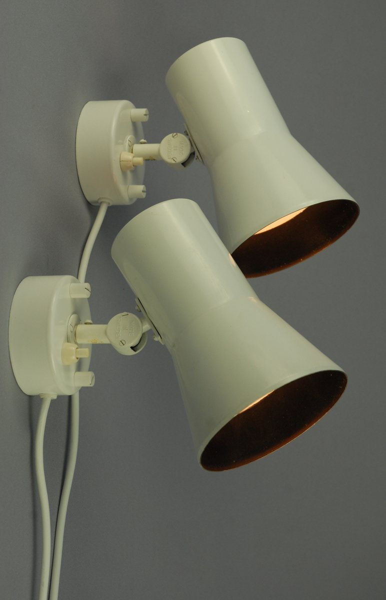 Each lamp retains its original manufacturer’s label, confirming authenticity. They have been professionally cleaned, rewired, and earthed (grounded) to meet modern electrical standards. A new high-quality electrical cable with an inline switch has been installed for ease of use. The lamps can also be hardwired directly into the wall if preferred.