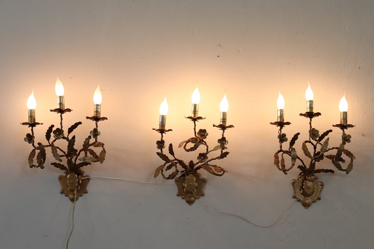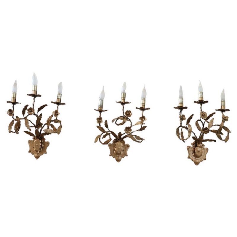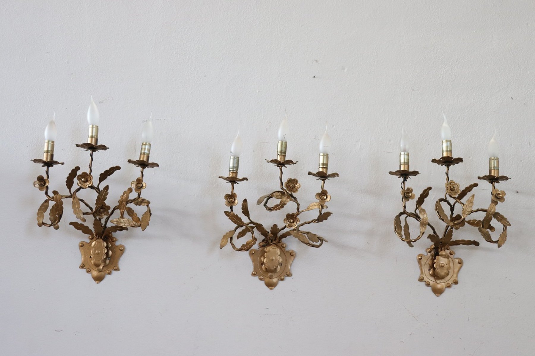 Appliques Vintage en Fer Doré, 1980s, Set de 3