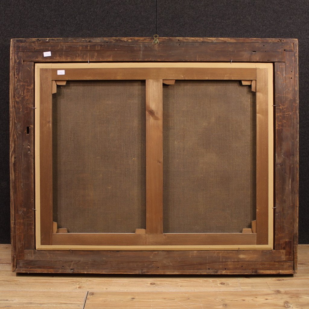 A well-preserved artwork that has undergone conservative restoration, relining, replacement of the stretcher, and restoration of color in small areas. In good condition. Internal dimensions: H 85.5 x W 110.5 cm.