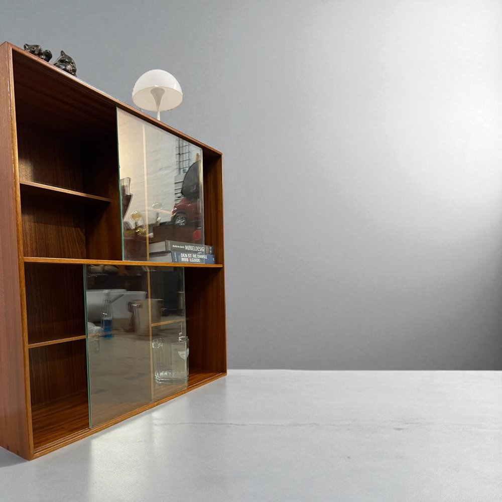 Rare vitrine danoise du milieu du siècle avec des portes coulissantes en verre et des proportions raffinées