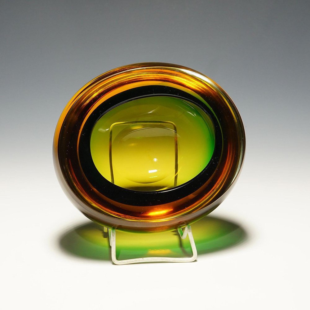 Bol Sommerso Mid-Century Art Moderne en Verre de Murano Vert & Ambre, 1960s