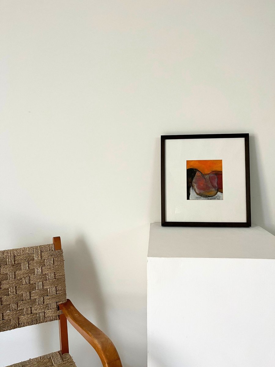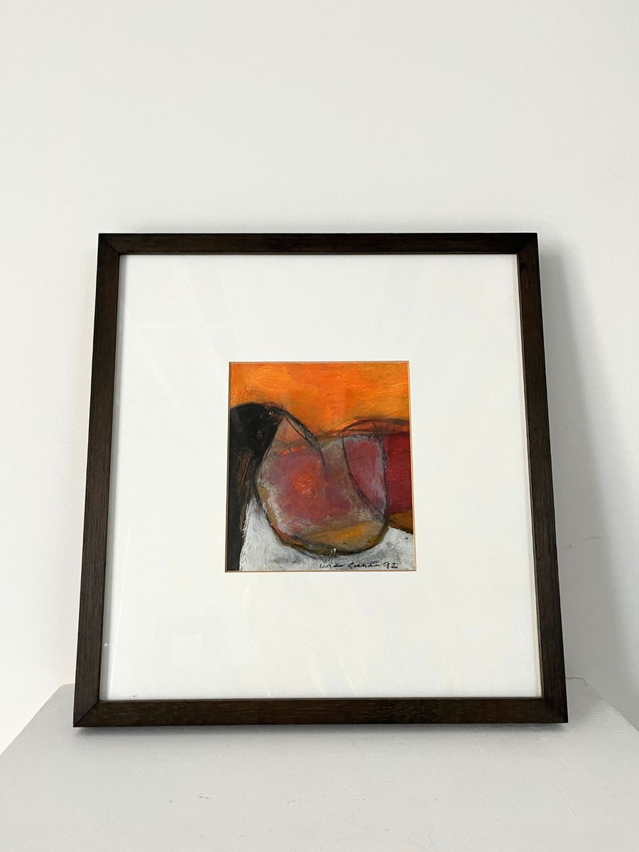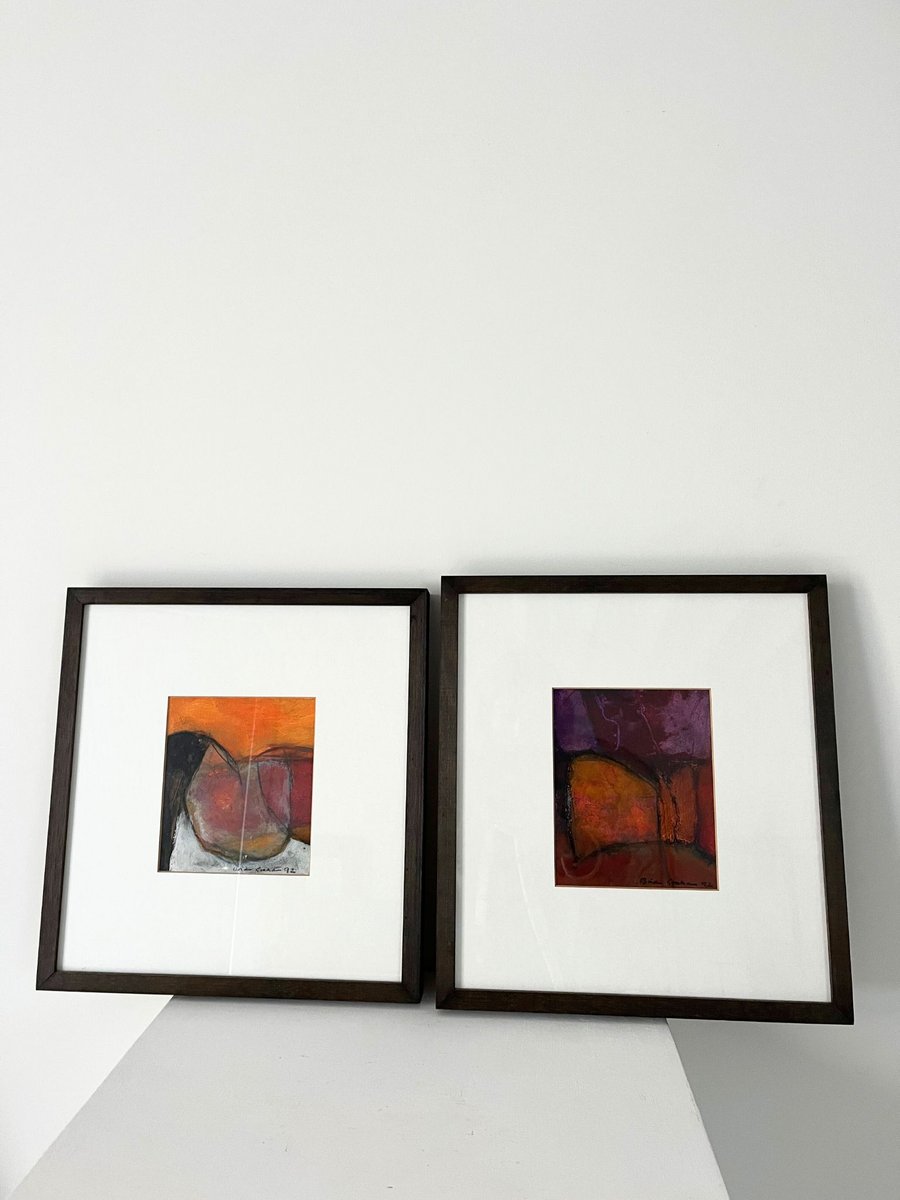 Paire de paysages modernistes de Brian Graham (né en 1945) : 'Orange Cliffs, Hengistbury' ; et 'Purbeck Valley'. Vendues par paire, elles sont toutes deux signées et datées Brian Graham 92 (en bas à droite). Toutes deux à l'huile sur carton