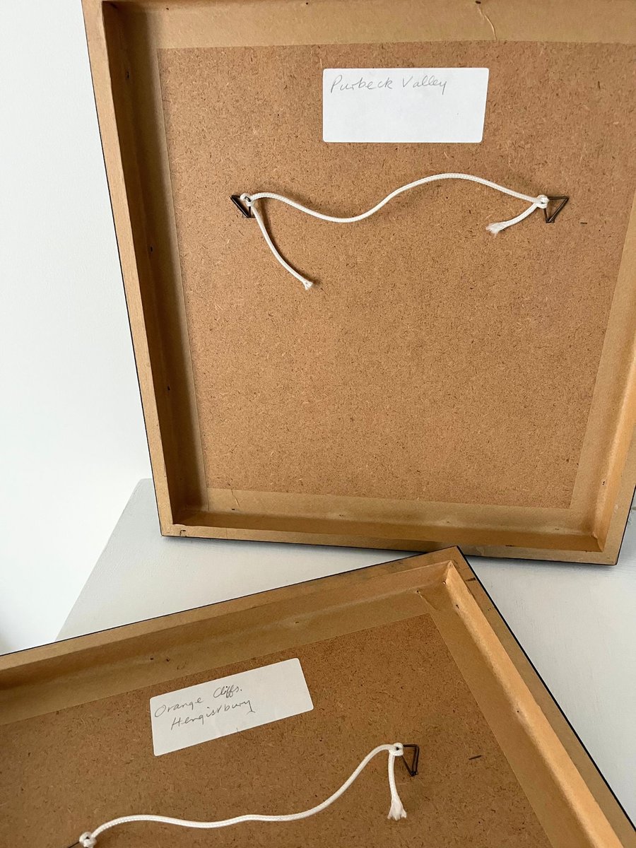 Framed dimensions 37cm h x 33.5cm w (Orange Cliffs) and 35.5cm h x 33.5cm w (Purbeck Valley)