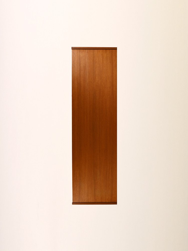 Vintage three-door teak cabinet with internal shelves and drawers. Simple, elegant, and functional lines.