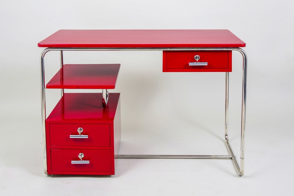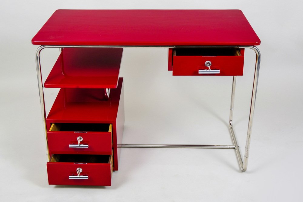 Bureau Bauhaus en Bois Laqué et Acier Plaqué Chrome, Allemagne, 1930s