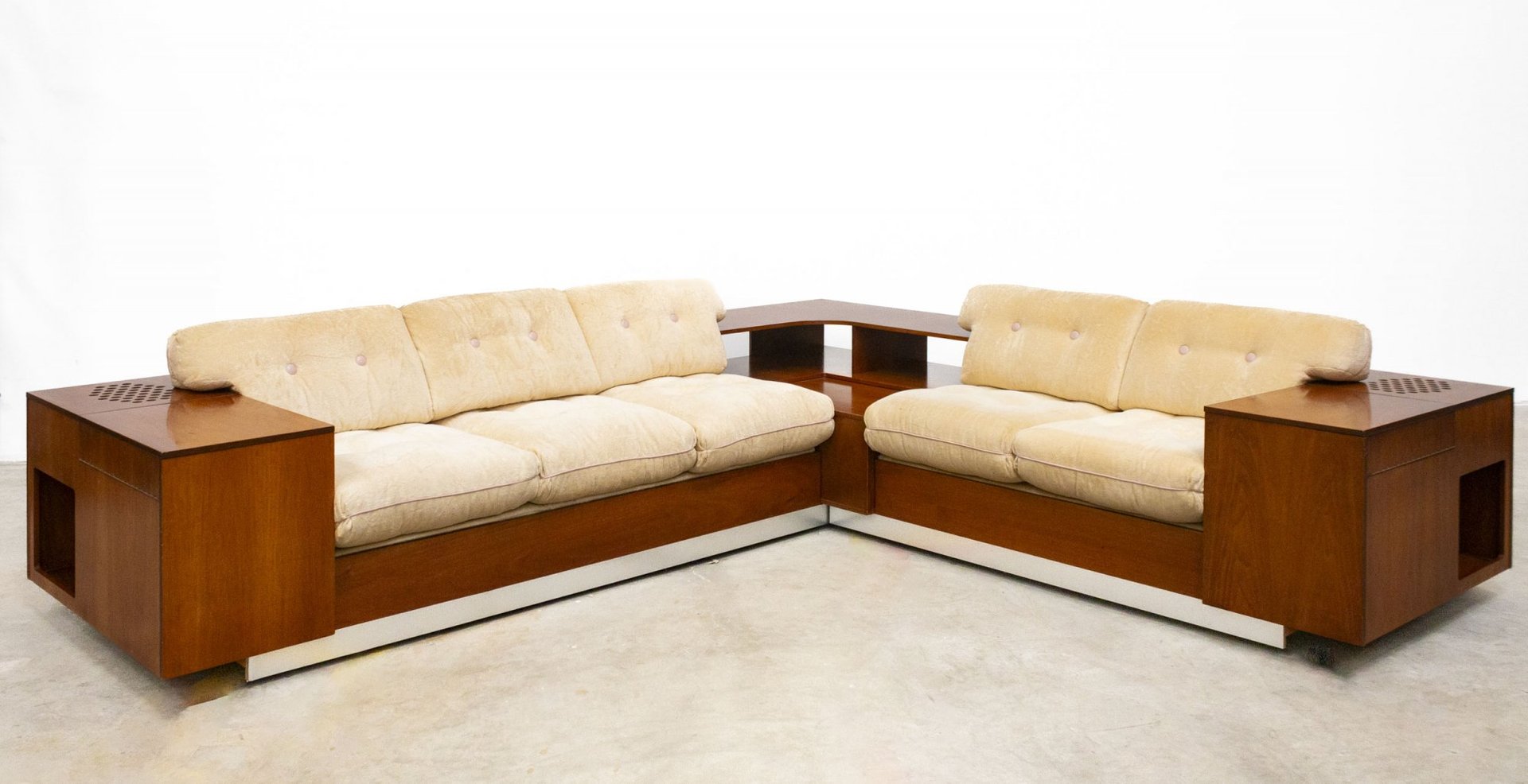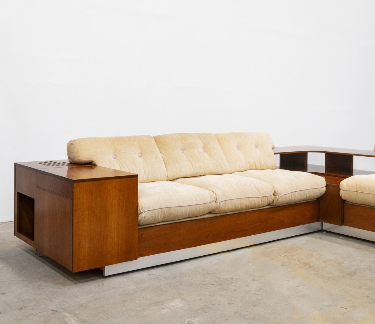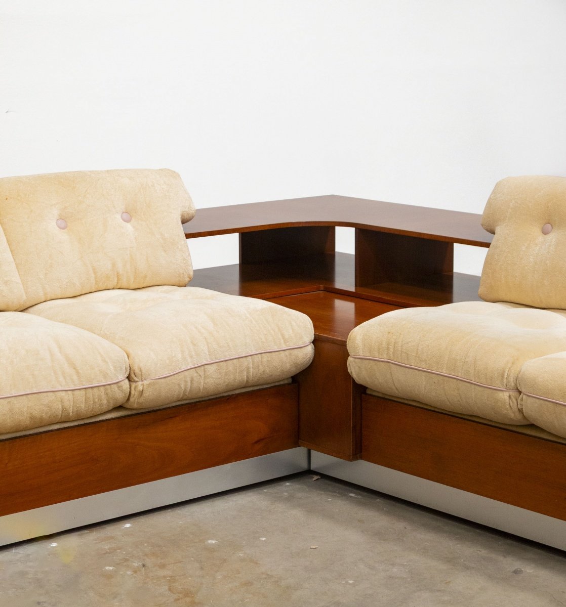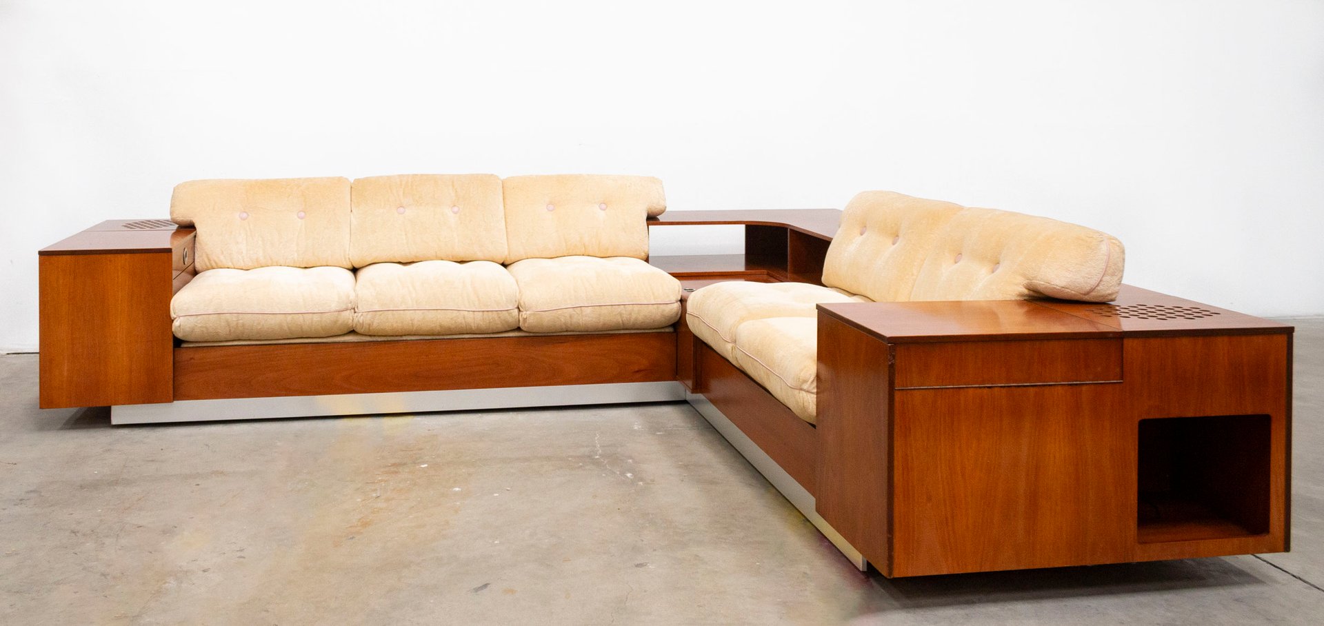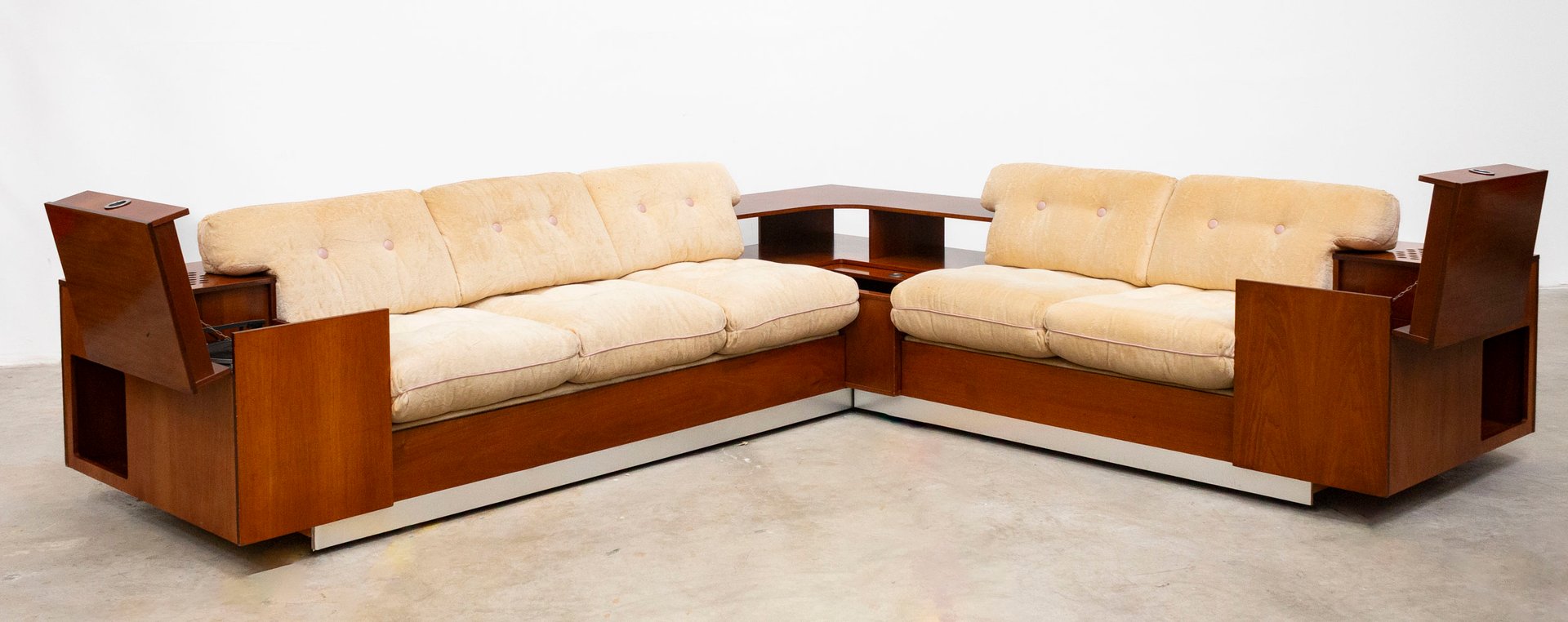 Canapé d'Angle avec Tourne-Disque et Compartiment Bar de Bernini, Italie, 1970s
