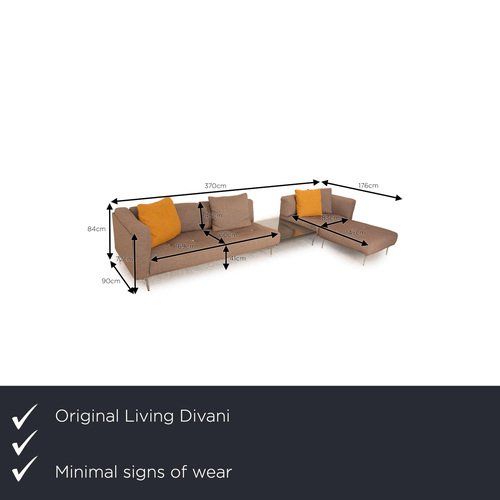 Canapé d'Angle Living Divani Rod en Tissu Brun-Beige par Piero Lissoni