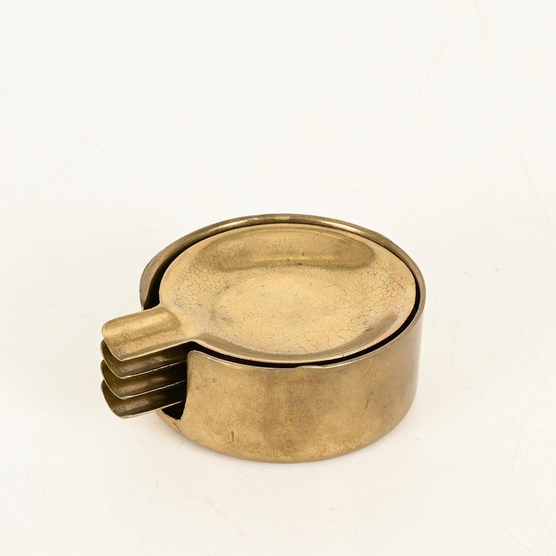Cendriers Empilables Mid-Century en Laiton dans le style de Jacques Adnet, Autriche, 1950s, Set de 4