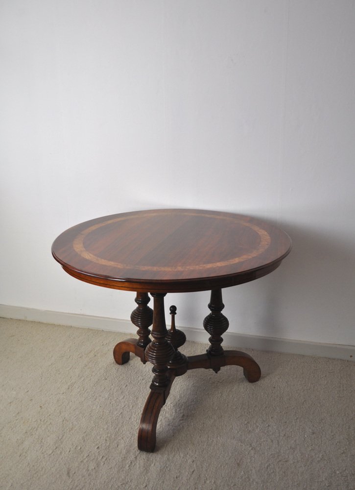Centre de Table Circulaire Victorien en Noyer, Acajou et Ébène