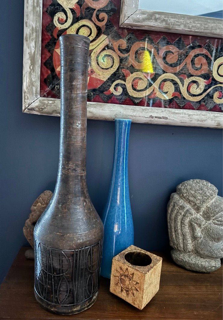 À partir des années 1960, il évolue vers un style plus contrôlé, moderniste, avec des vernis brillants et des motifs géométriques voyants. Mais au fil du temps, le travail de Roger Capron qui s’étend des tables basses et d’appoint jusqu’aux carafes et aux vases est considéré comme cliché en France et il tombe dans l’oubli. Cependant, aujourd’hui, ses pièces sont de nouveau hautement estimées par les collecteurs du monde entier.