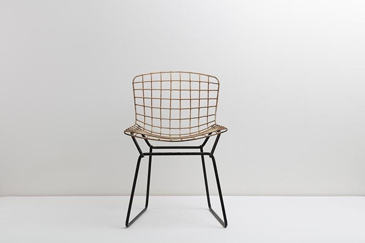 Le sculpteur et designer de mobilier Harry Bertoia est né en 1915 à San Lorenzo en Italie. En 1930, il s’installe aux Etats-Unis, et étudie à la Society of Arts and Crafts à Detroit, dans le Michigan (1936), puis à la Cranbrook Academy of Art près de Bloomfield Hills, dans le Michigan (1937-1939). C’est dans cette école qu’il rencontre Walter Gropius, Edmund N. Bacon et Charles and Ray Eames. Il y enseigne également la métallurgie, la joaillerie (1937-1942) et le graphisme (1943).