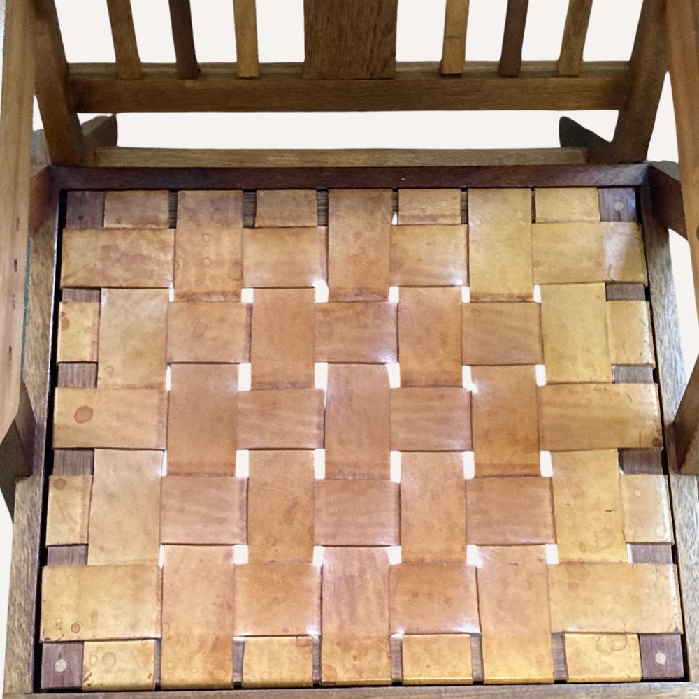 Chaise d'Apprentie Arts & Crafts en Cuir Tissé, Pays-Bas, 1950
