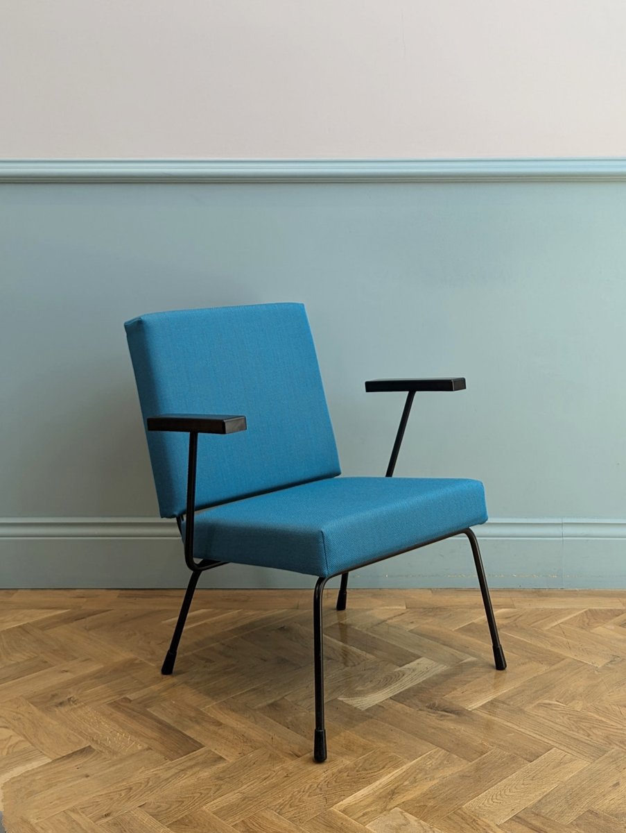 En 1953, Rietveld est nommé Directeur du Design à Gispen, et développe la collection Furniture for a Simple Interior, qui inclut l’emblématique 1407 Chair (1953/54). Conçue en collaboration avec le designer néerlandais André Cordemeyer, la 1407 a reçu une médaille d’or à la X Triennale di Milano en 1954. Durant les années 1960, il devient très populaire aux Pays-Bas, et meuble les intérieurs de particuliers et de bureaux. Les designs conçus par Rietveld pour Gispen incluent la Model 116 Chair (1953), la Panama Lamp (1953), le Model 663 Storage System (1954), et la Mondial Chair (1958), créée pour le Dutch Pavilion à la World Expo de Bruxelles en 1958.
