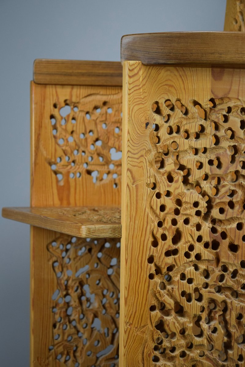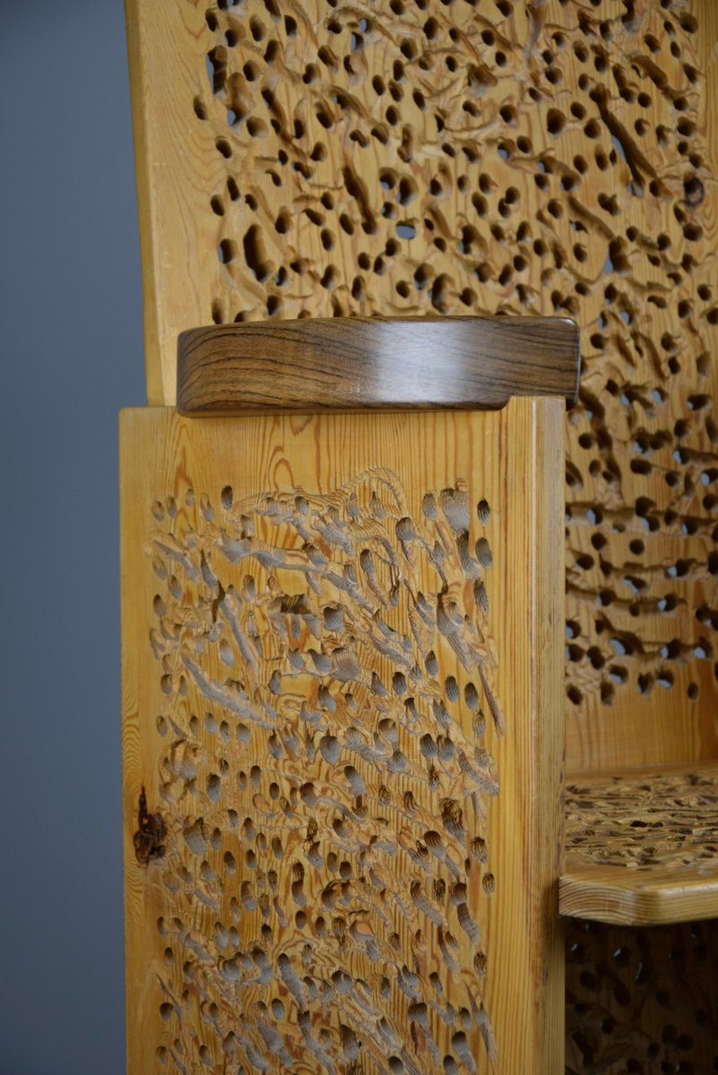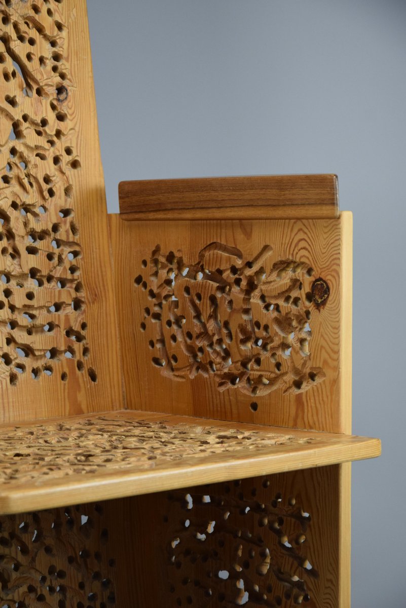 Voici un fauteuil sculptural rare, méticuleusement fabriqué à la main par le célèbre artiste italien Urano Palma. Cette pièce extraordinaire n'est pas un simple meuble, c'est une œuvre d'art qui allie harmonieusement fonctionnalité et expression artistique. Le design complexe, sculpté avec précision dans un bois de haute qualité, incarne la capacité unique de Palma à transformer l'ordinaire en extraordinaire. Chaque courbe et chaque détail racontent une histoire, invitant l'observateur à apprécier la profondeur de la créativité et la maîtrise de l'artisanat.