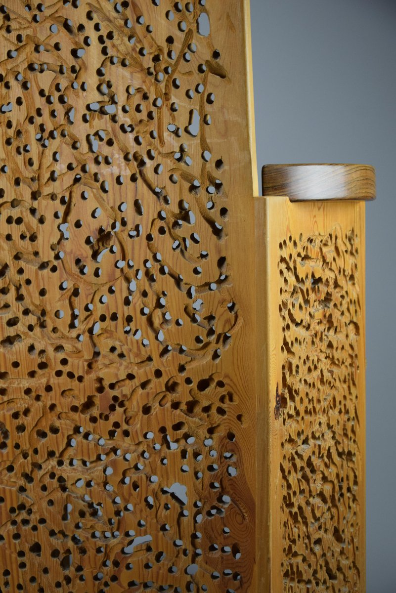 Introducing a rare, sculptural armchair meticulously handcrafted by the renowned Italian artist, Urano Palma. This extraordinary piece is not just furniture; it's a work of art that seamlessly blends functionality with artistic expression. The intricate design, carved with precision into high-quality wood, embodies Palma’s unique ability to transform the ordinary into the extraordinary. Each curve and detail tells a story, inviting the observer to appreciate the depth of creativity and the masterful craftsmanship involved.