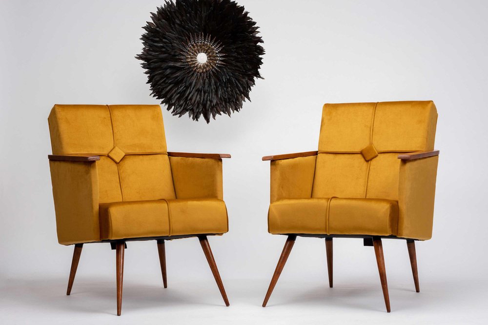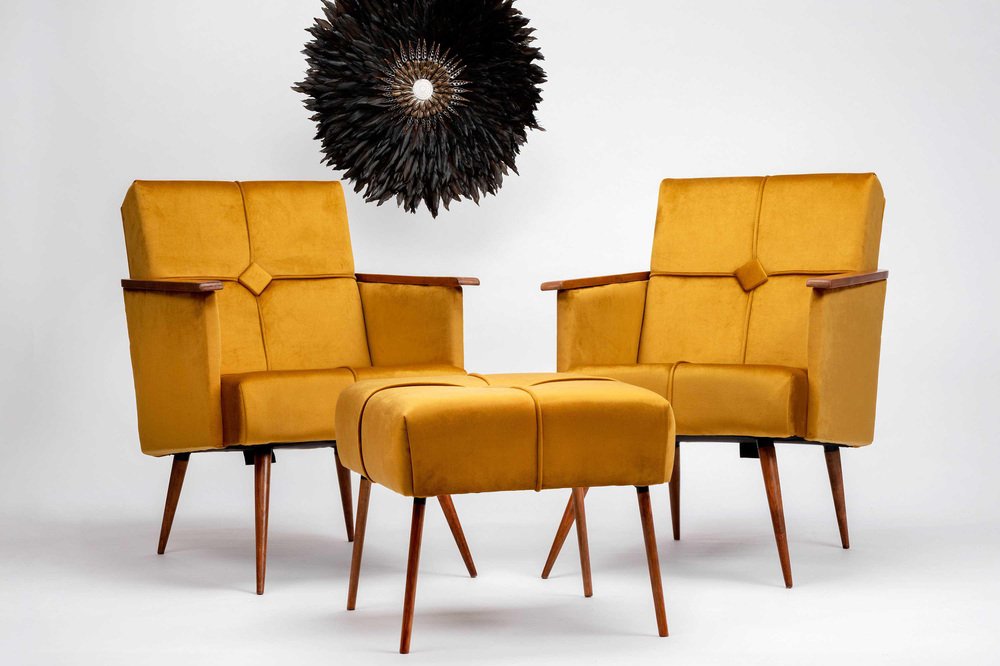 Chaises Cocktail Géométriques Vintage avec Repose-Pieds, 1950, Set de 5
