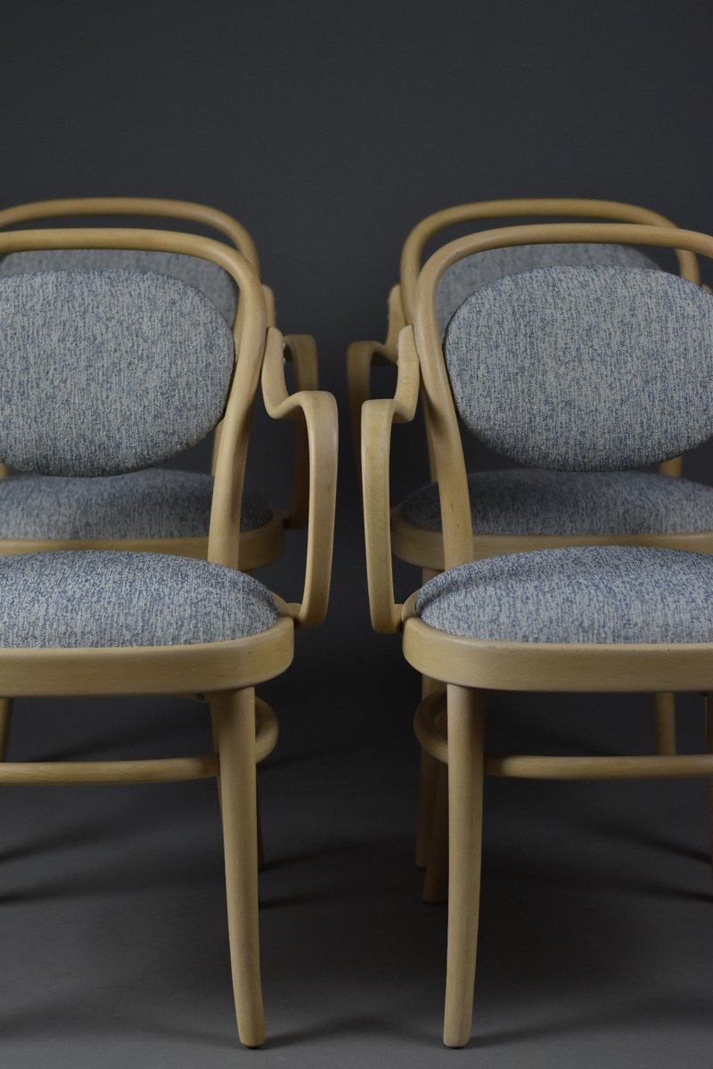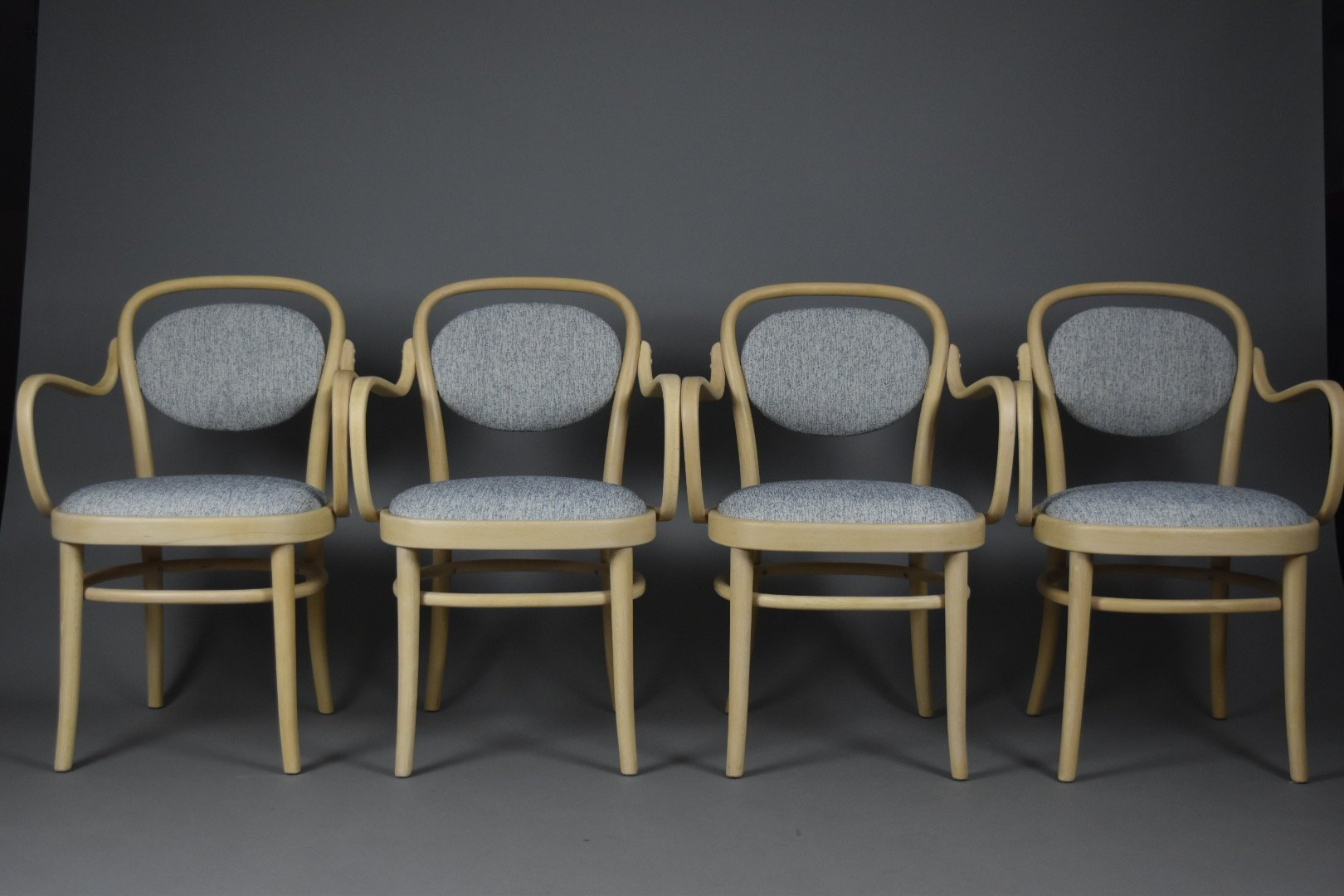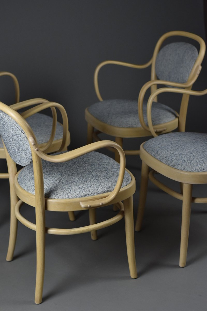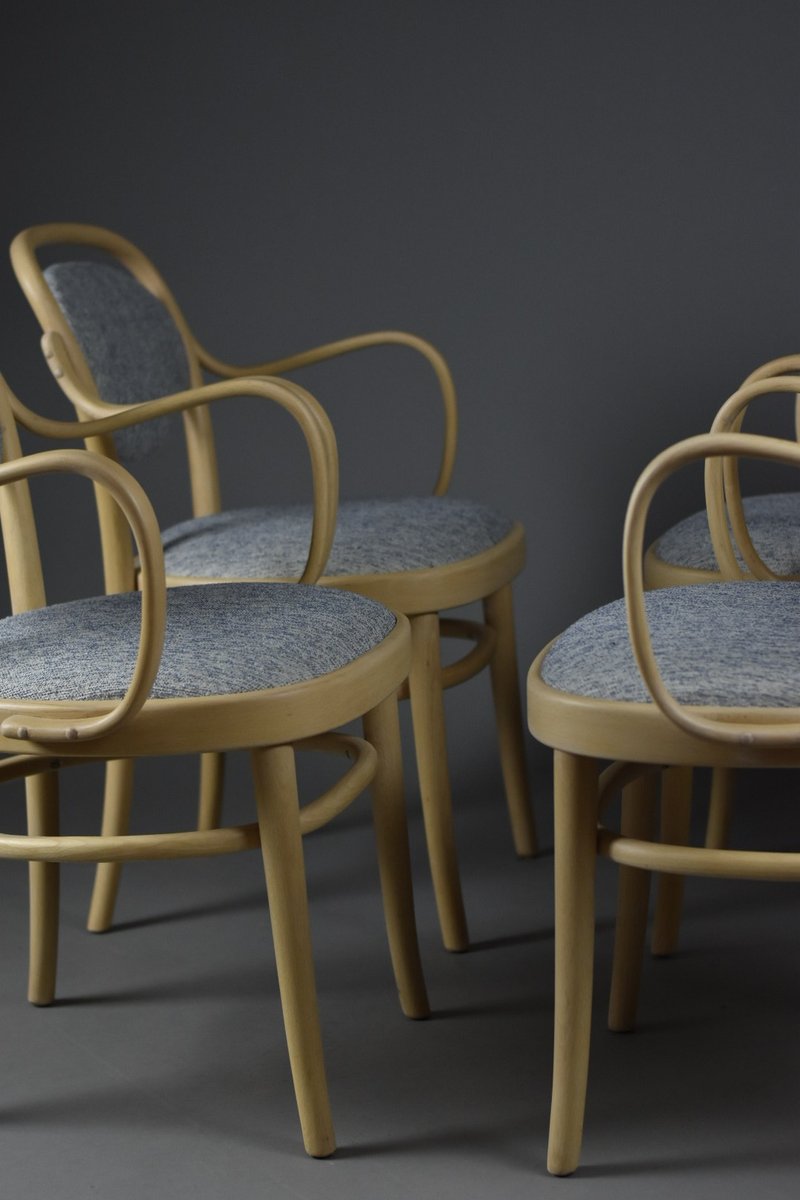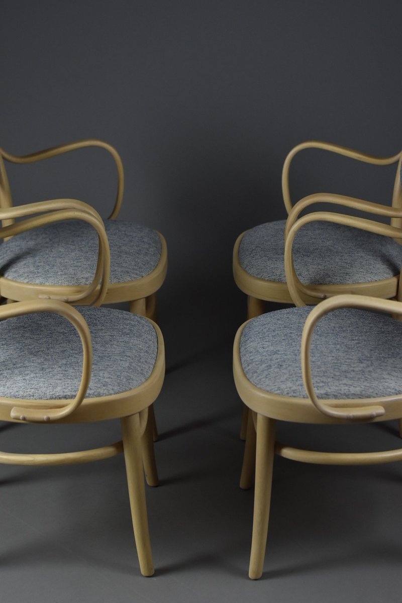 A refined set of four original bentwood dining chairs by Gemla, Sweden’s oldest furniture manufacturer known for its craftsmanship in steam-bent solid wood.