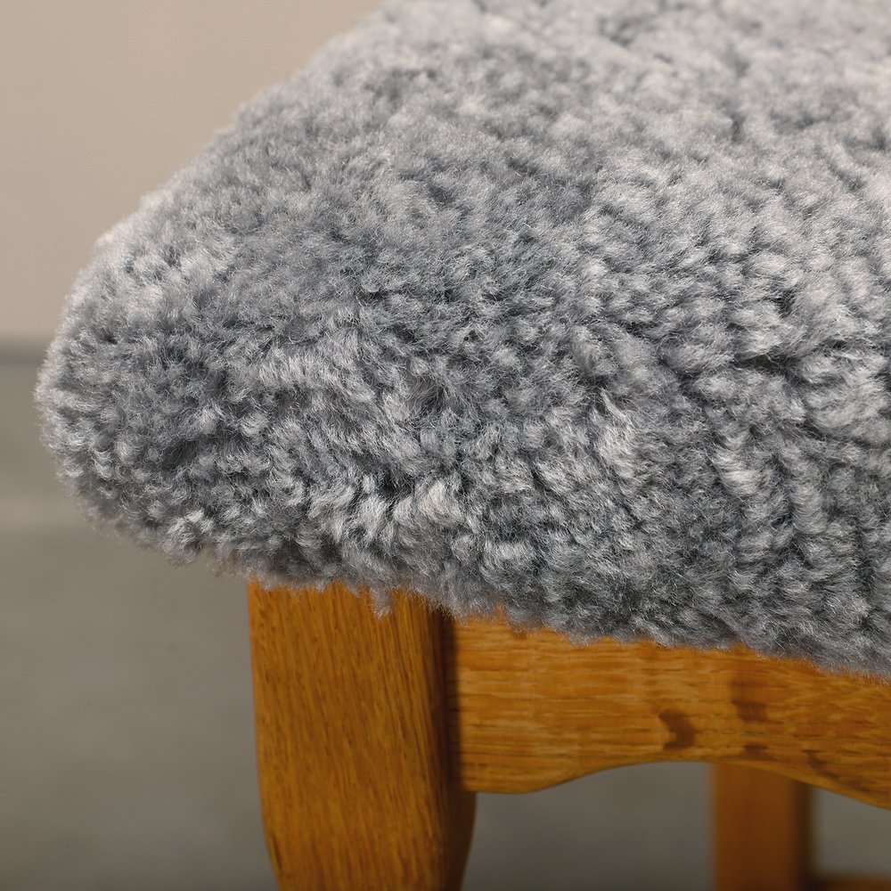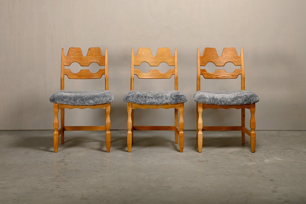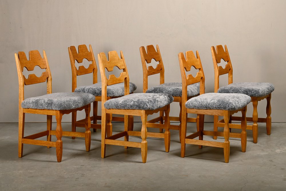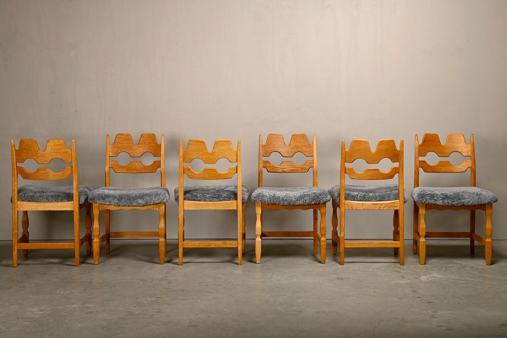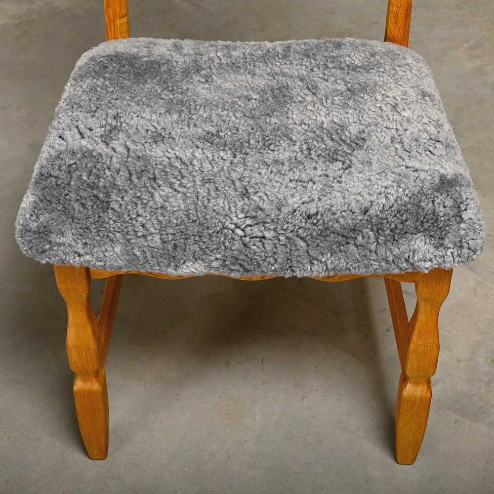 Chaises de Salle à Manger Razorblade en Laine d'Agneau et Chêne par Henning Kjærnulf, 1960s, Set de 6