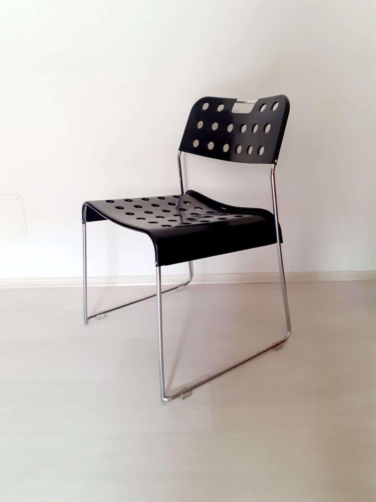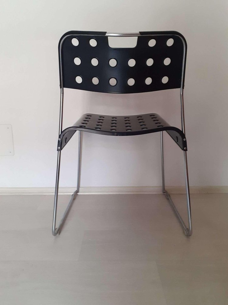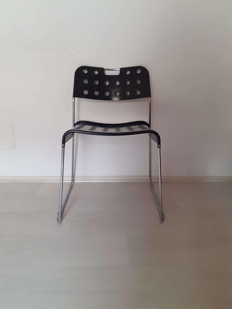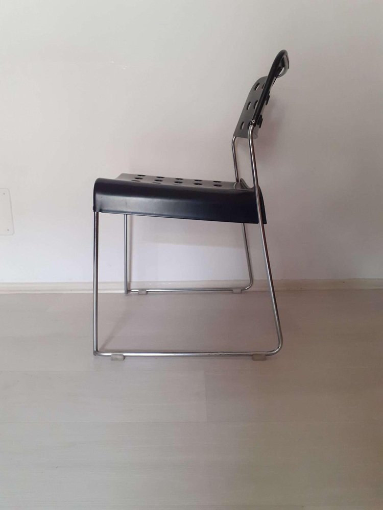 Chaises Empilables Omstak Noires par Rodney Kinsman pour Bieffeplast, 1970s, Set de 6