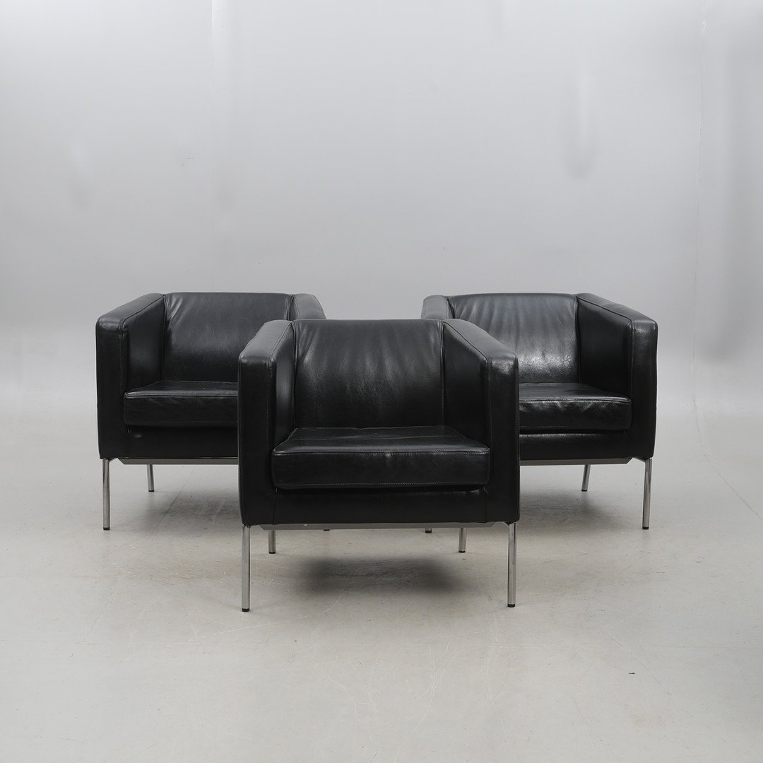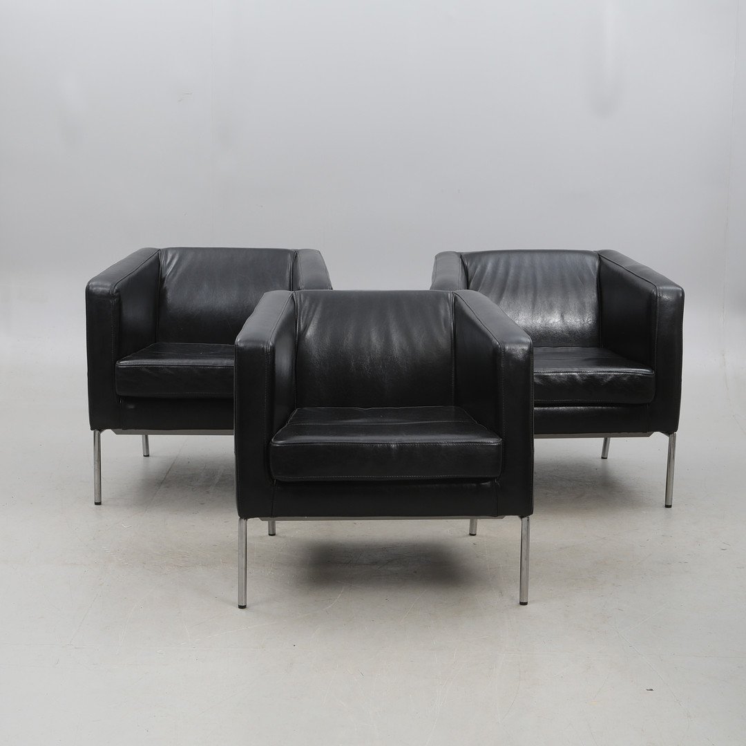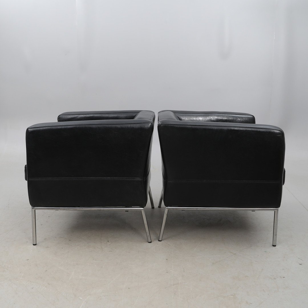 Chaises en Cuir Noir avec Structure en Acier de Ikea, 2000s, Set de 2
