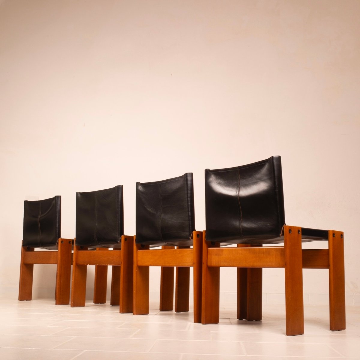 Chaises Monk Vintage par Afra et Tobia Scarpa pour Molteni, 1973, Set de 4