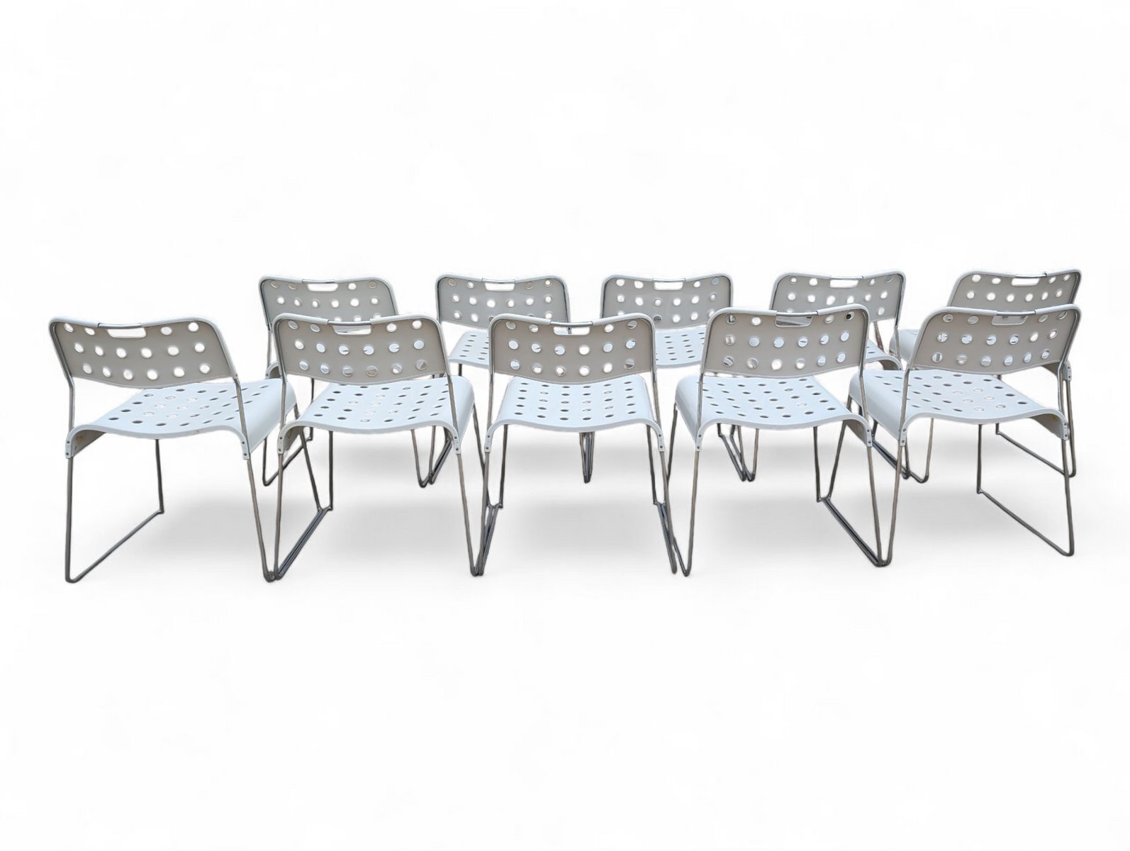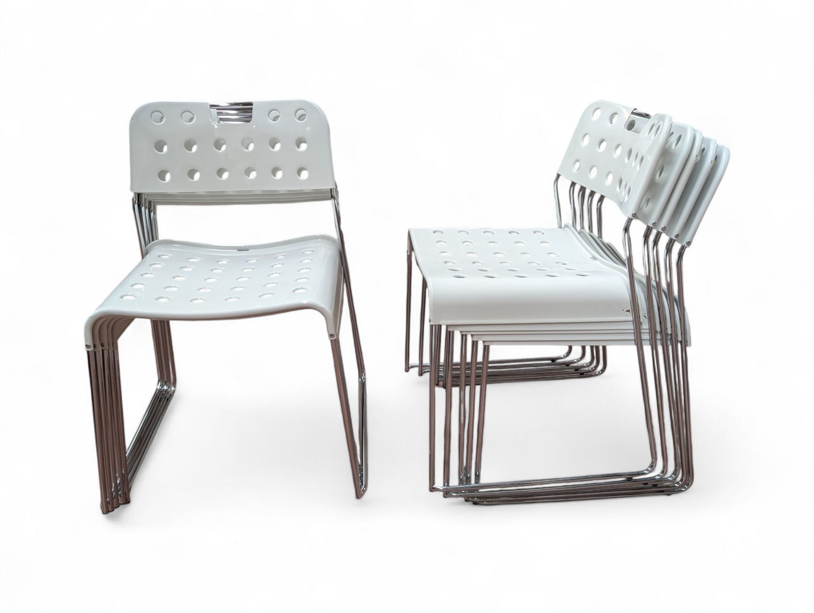 A set of stackable chairs with an iconic, modern, industrial design, produced by Bieffeplast (Padova), Italy.