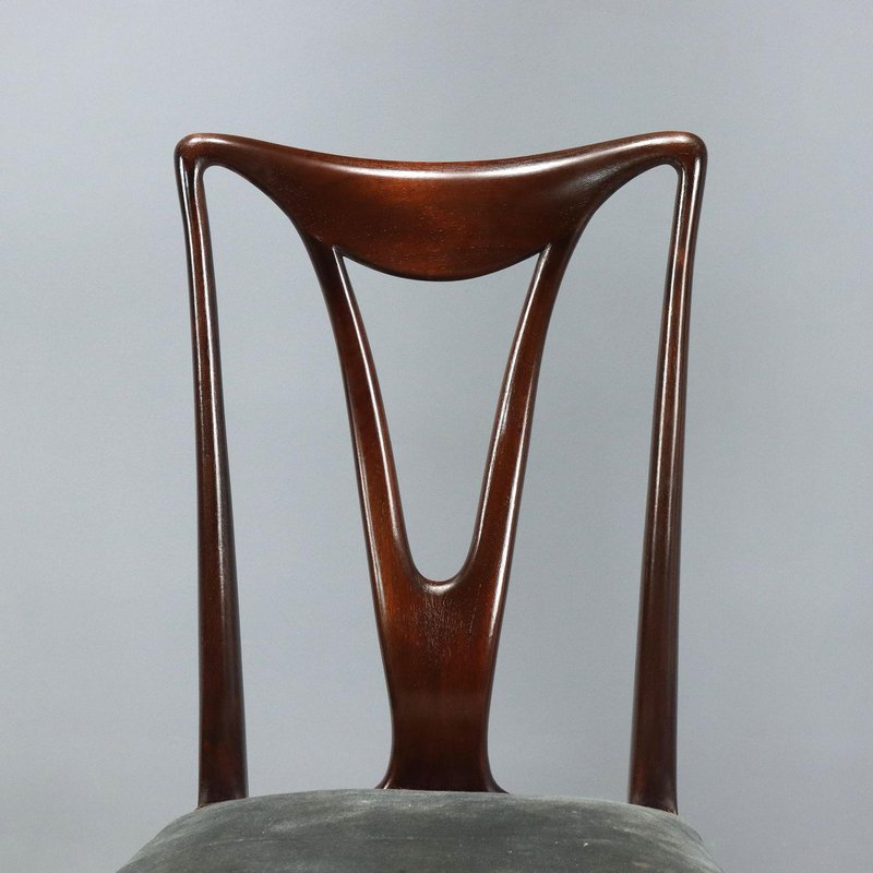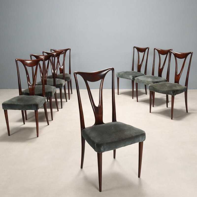 Chaises Vintage en Bois et Velours, Italie, 1950s, Set de 8