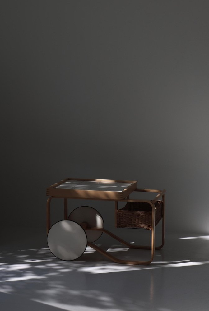 L’architecte et designer Alvar Aalto est né en 1898 à Kuortane en Finlande. En 1916, il commence ses études à l’institut Technologique d’Helsinki. Malgré l’interruption de ses études par la guerre civile finlandaise, il obtient son diplôme en architecture en 1921. En 1923, il crée un atelier d’architecture à Jyväskylä en Finlande. L’année suivante, il épouse sa consœur Aino Mandelin. En 1927, il déménage son atelier à Turku. Entre les années 1920 et 1930, le style artistique d’Aalto évolue du Néoclassicisme au Fonctionnalisme. Son Rationalisme devient de plus en plus souple, mais il garde une préférence pour les modèles naturels. Dans les années 1950, il se tourne finalement vers le Modernisme.