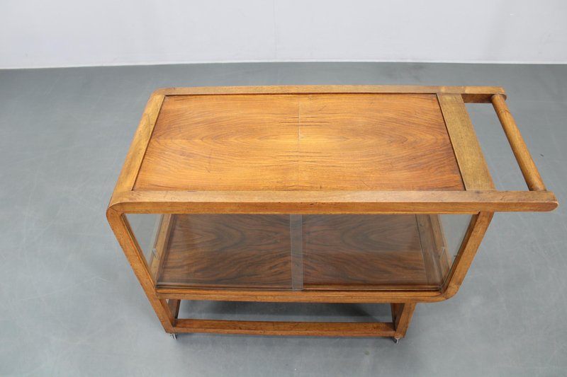 Chariot de Service Art Déco Vintage en Noyer, 1930s