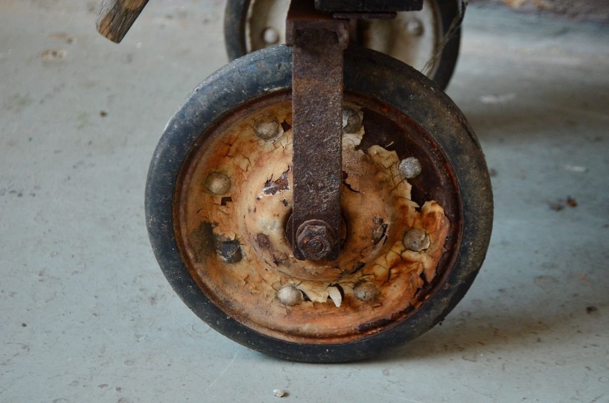 The cart has been used with intensity but remains perfectly functional. The front wheels are directional, the arm can be disassembled. It has been cleaned, the wood is waxed, it remains in its juice with many traces of life.