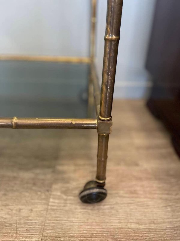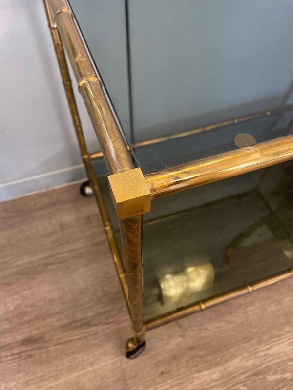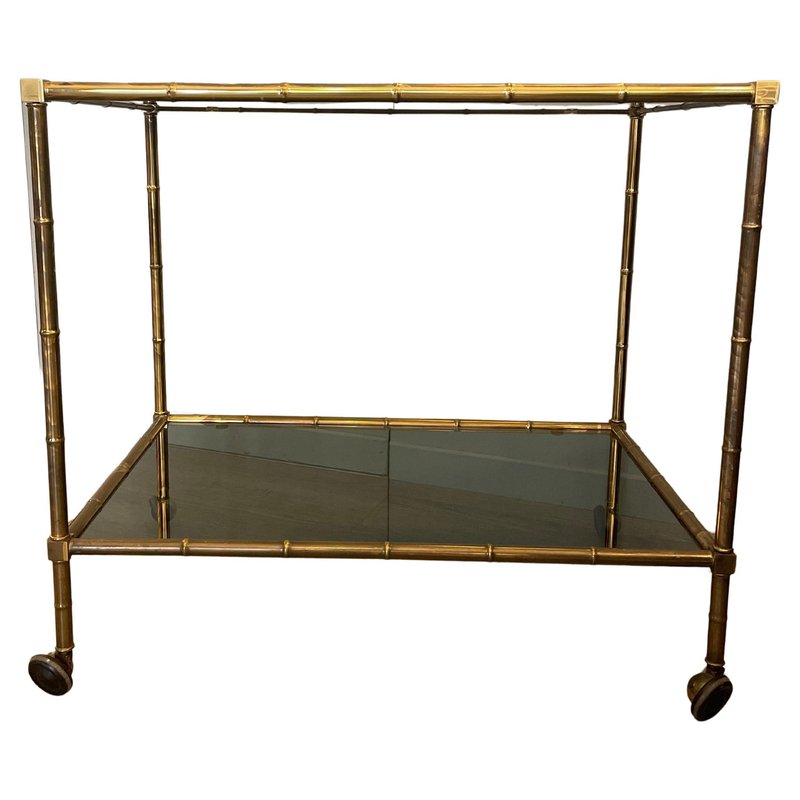 Chariot Vintage en Laiton et Verre Fumé, 1960
