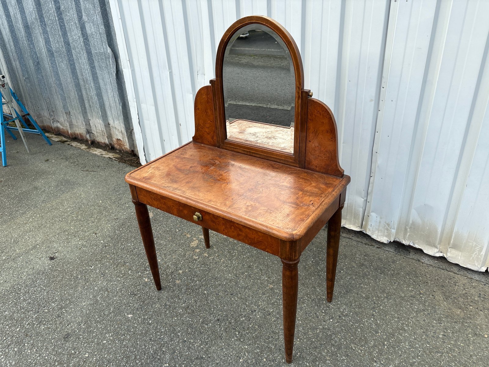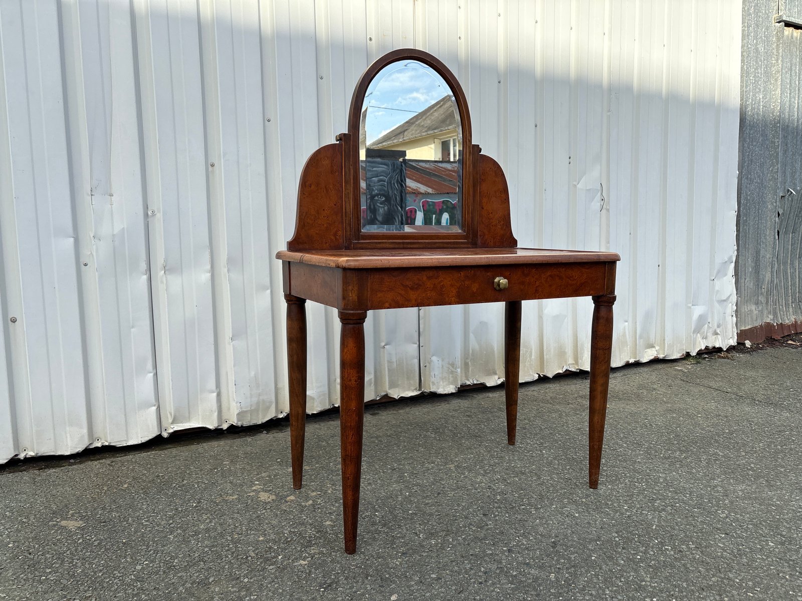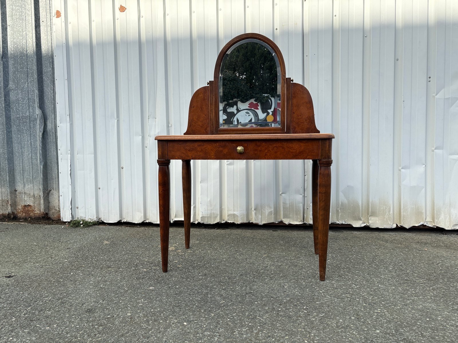Elegant French Art Deco dressing table, dating from the 1920s–1930s, featuring a tilting mirror and a single drawer.