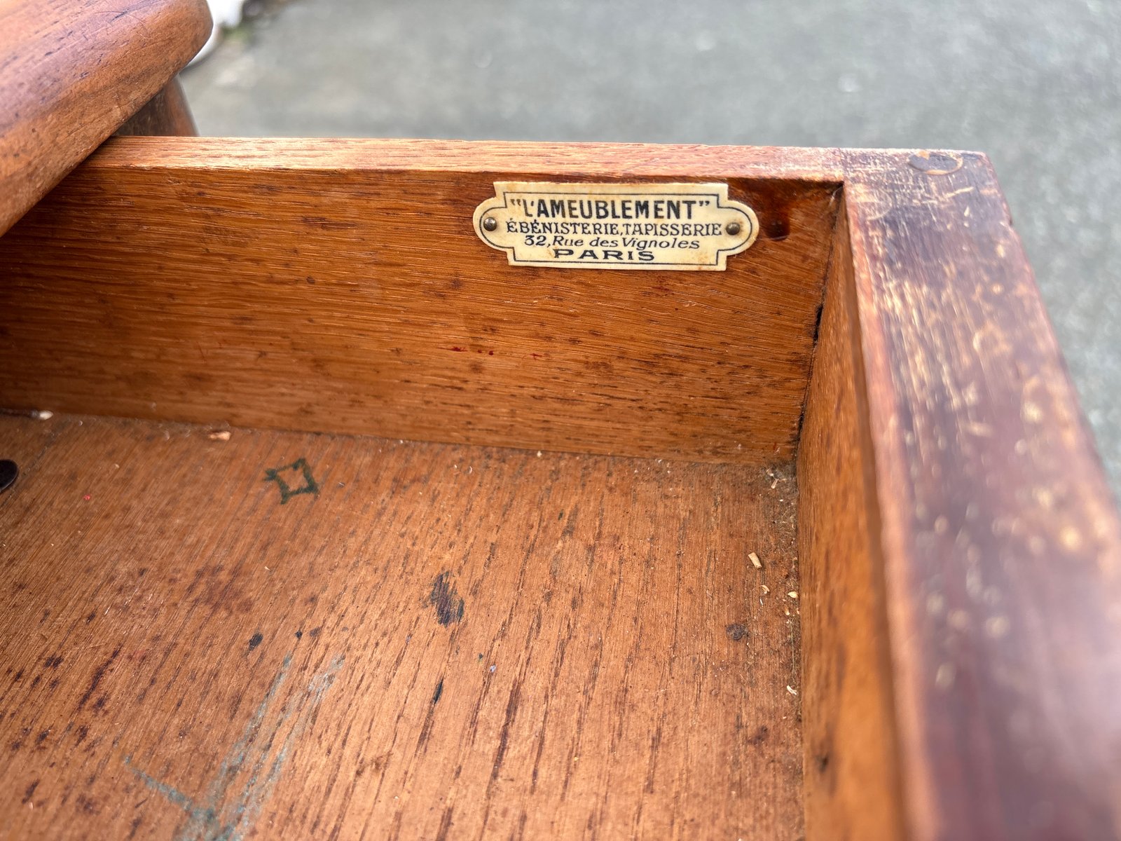 This label confirms the Parisian origin of the piece and supports its attribution to a French workshop active in the early 20th century.