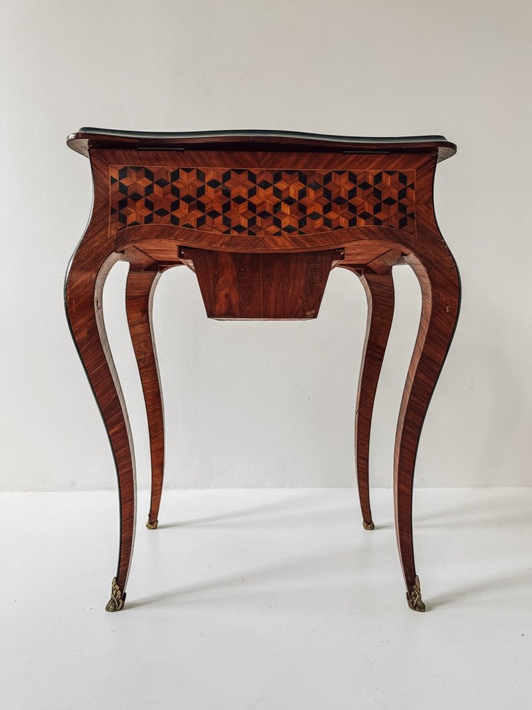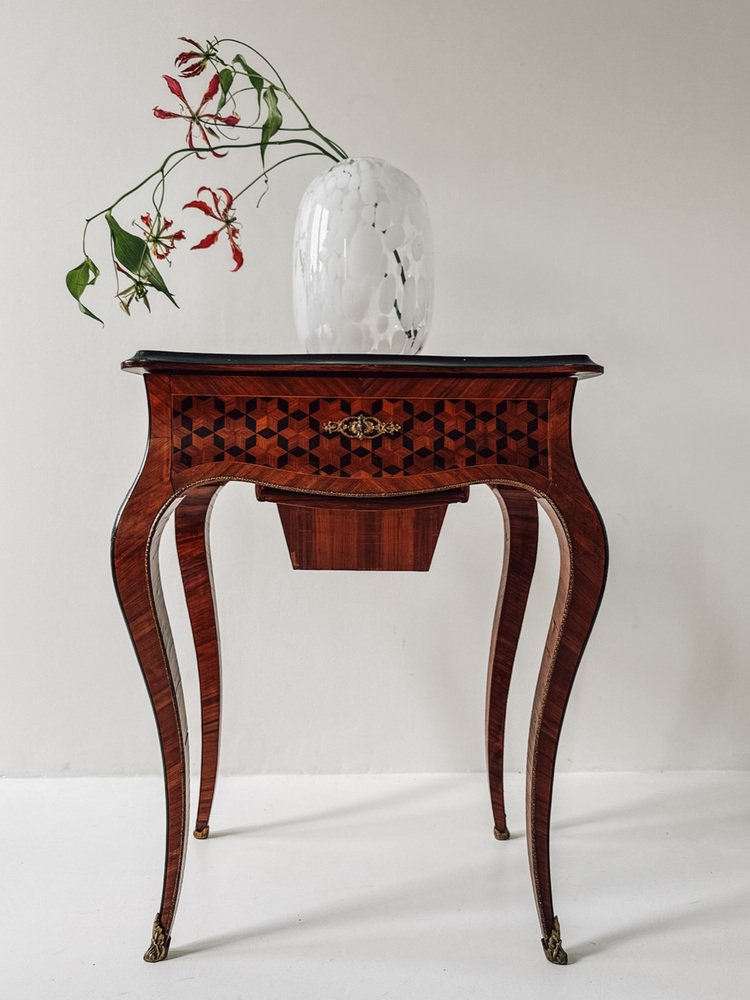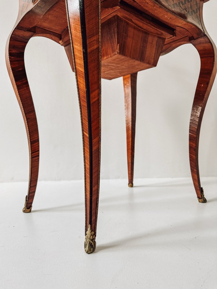 Ses élégants pieds cabriole, ses proportions délicates et sa marqueterie exquise en font un véritable bijou parmi les meubles anciens.