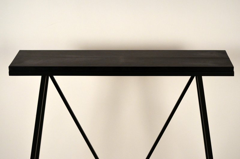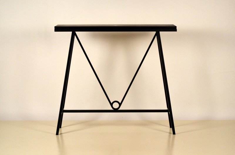 Console Trapèze en Acier Noirci et Chèvre par Atelier Cabanel