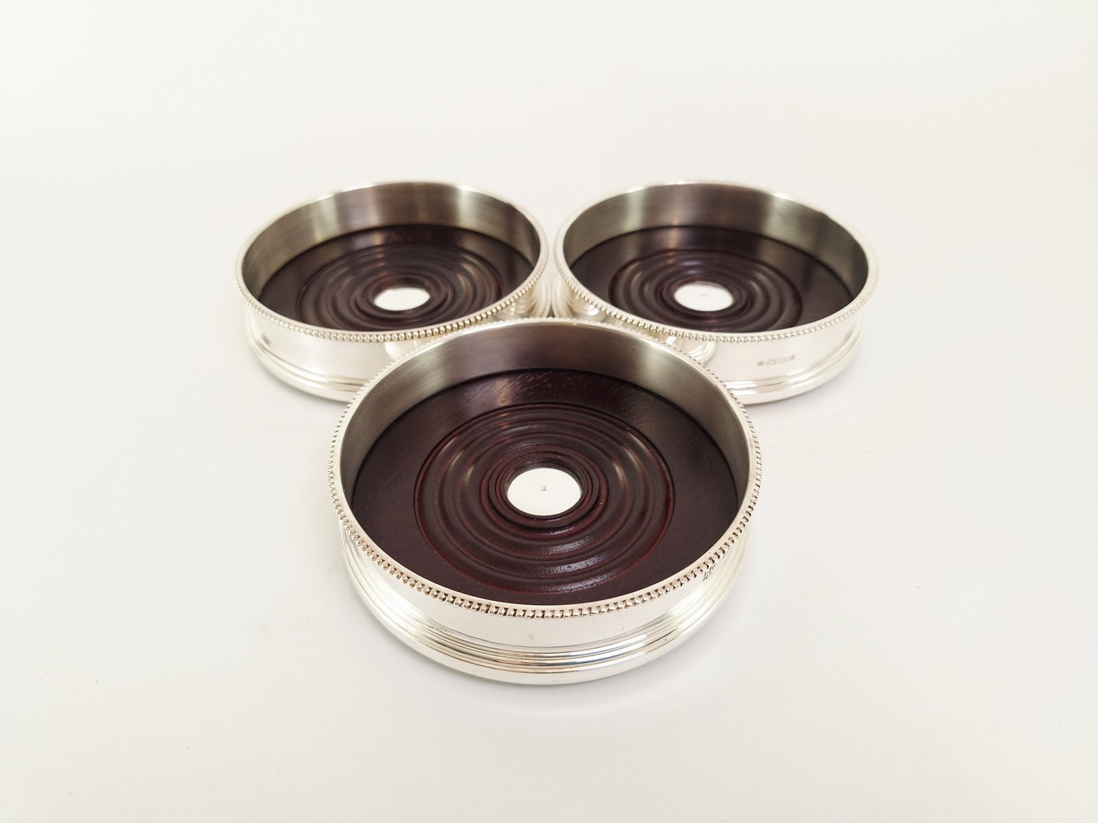 Dessous de Bouteille Vintage en Argent Sterling par Richard Comyns, 1989, Set de 3