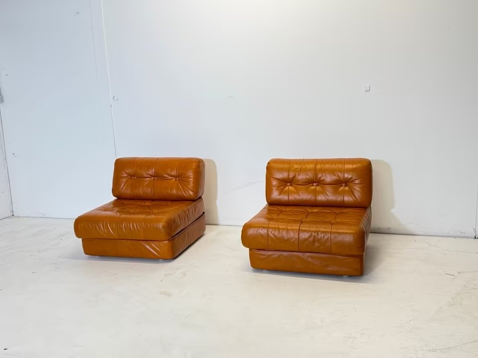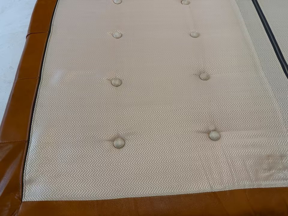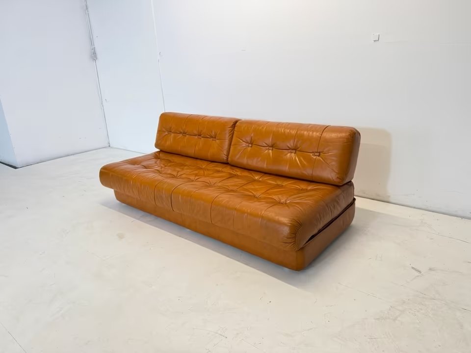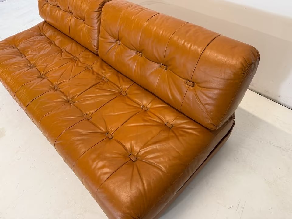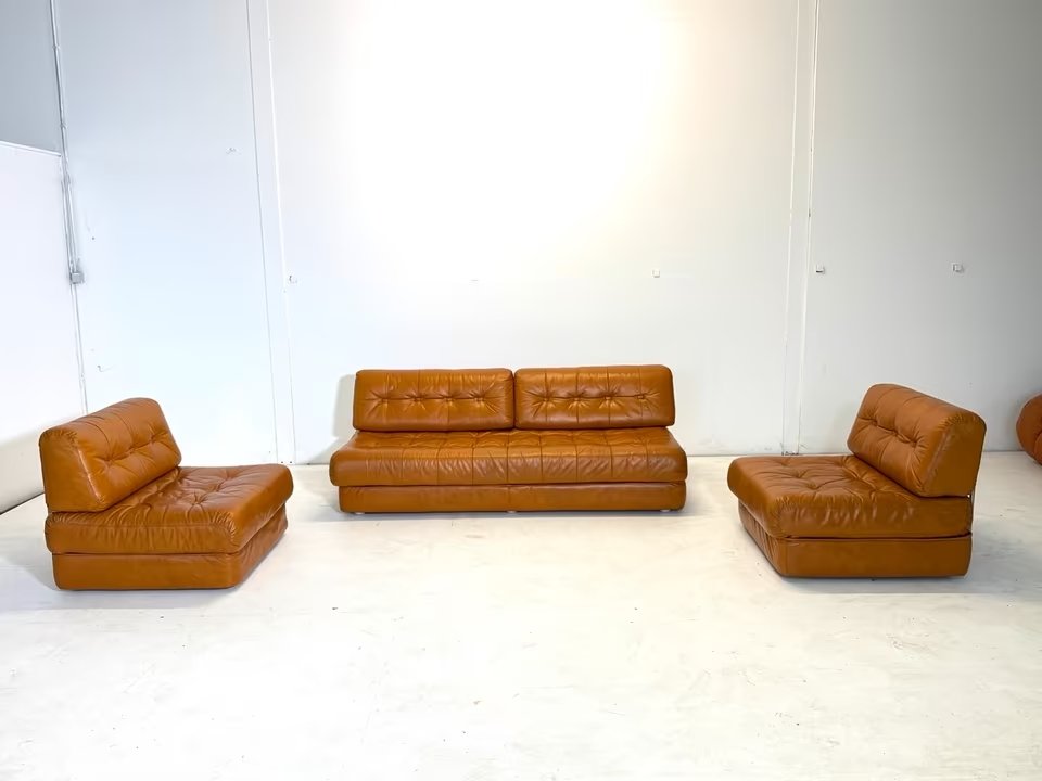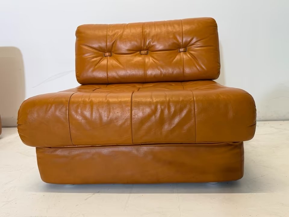 Couleur : marron Dimensions : lit de repos : largeur env. 195 cm, hauteur env. 74 cm, profondeur env. 85 cm 2 fauteuils en cuir : largeur env. 84 cm, hauteur env. 74 cm, profondeur env. 85 cm État : l'ensemble est en bon état, voir photos. Il provient d'un foyer sans animaux et non-fumeur.