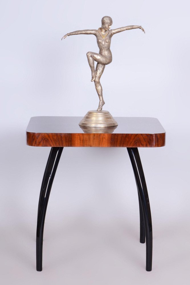 In pristine original condition, the item has been professionally cleaned, and its polish has been revived by our refurbishing team in Czechia. This item features classic Art Deco elements. Art Deco is a style that originated in France in the early 20th century. Its furniture designs are meticulously crafted, usually using exotic woods. Pieces are typically lacquered to give off a dazzling gloss. These eloquently crafted pieces will add visual performance and posh to any interior.