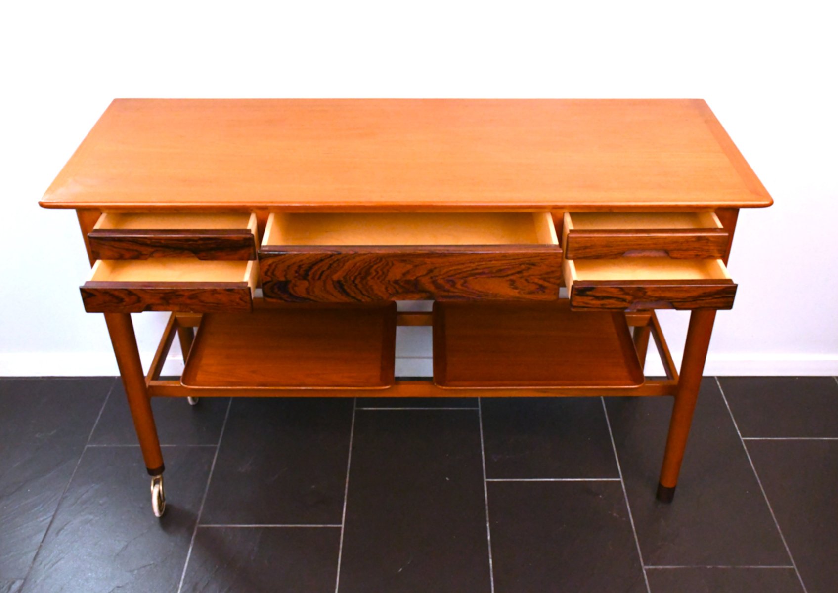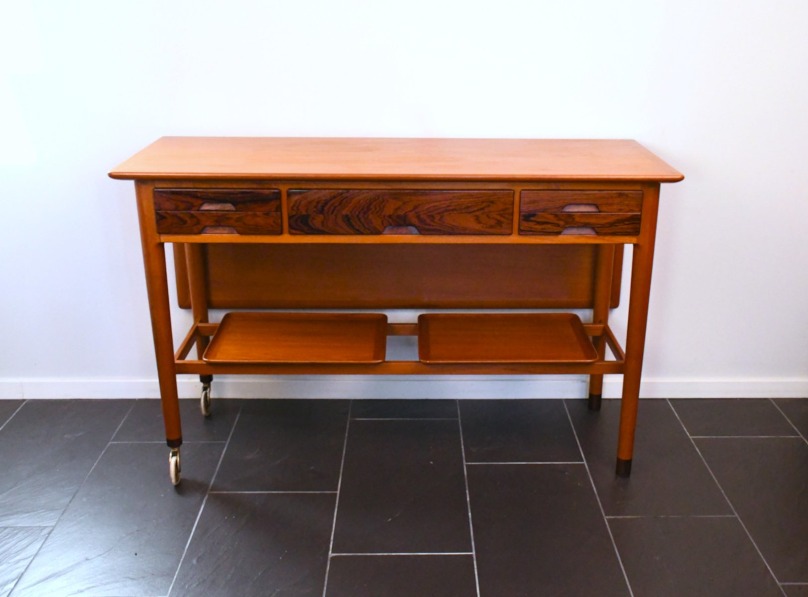 Sous la direction de la designer Lena Larsson de 1947-1965, la ligne Trivaserie est intégrée dans la marque expérimentale NK-bo de Nordiska Kompaniet. Au cours de ces années, la série Triva ne s'est pas limitée au mobilier démontable et s'est étendue à des modèles comme le canapé Paradiset de Kerstin Hörlin-Holmquist (vers 1958) et le banc Tokyo d'Yngvar Sandström (vers 1964). Parmi les autres créations mid-century notables de Nordiska Kompaniet, mentionnons la coiffeuse Annette (1943) et la chaise Trienna (1957) par Carl-Axel Acking, architecte, décorateur et designer industriel de renom.