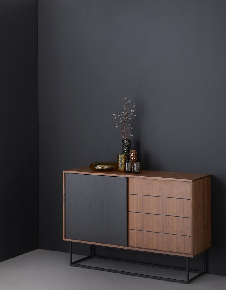Virka high sideboard by Ropke Design and Moaak Materials: walnut, metal. Dimensions: D 40 x W 120 x H 82 cm Also available in different colours and materials. The founders, Mia and Torben Koed, decided to put their 30 years of experience into a new project. It was time for a change and a new challenge. The challenge was to build an ambitious design brand from the ground up with high-quality materials and great attention to the little details. with a drive to create new originals, the WOUD collection is founded upon the idea to look ahead instead of looking back and share the love for honest design. Therefore, we are eager to discover and develop new ideas whether it being in form, function or choice of material.